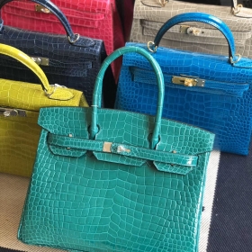 鳄鱼皮美在它天然渐变的方格纹路,虽然缺乏弹性,但质地非常结实,有种说法是鳄鱼皮皮具只要保养得当会越用越光泽,越用越柔韧,所以鳄鱼皮包理所当然的成为了众多明星们的宠儿。