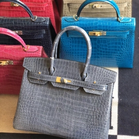 爱马仕birkin鳄鱼皮价格多少钱 N7风暴蓝Blue Tempete Hermes Birkin 30cm 湾鳄