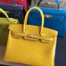 爱马仕湾鳄 Hermes Kelly Bag 28cm T5蜜桃粉 Shiny porosus crocodile亮面倒V 澳洲湾鳄 完美品相 全手工蜡线缝 金扣