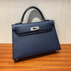 Hermes mini Kelly 二代 20御用Epsom牛皮 1P鸭子蓝 手工蜜蜡线缝制
