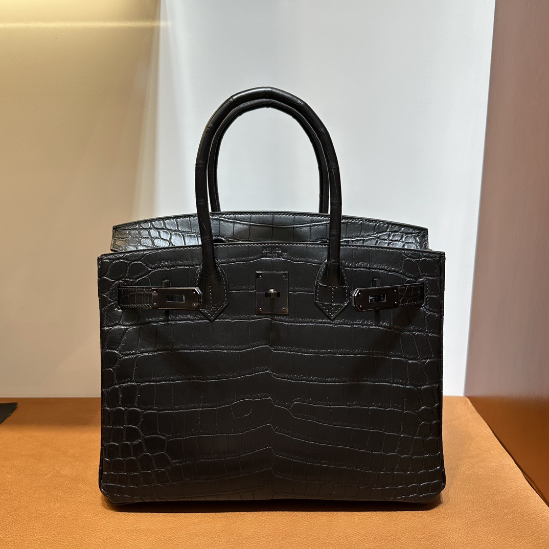 爱马仕香港官网包包 Hermes Birkin 30 CK89黑色 HCP雾面倒V野生湾鳄