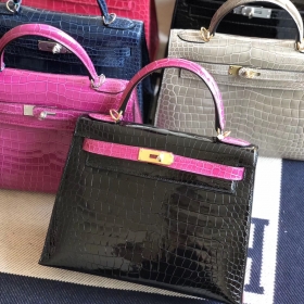 Kuwait Hermes Kelly 28 Shiny Nilo Crocodile Noir Silver hardware