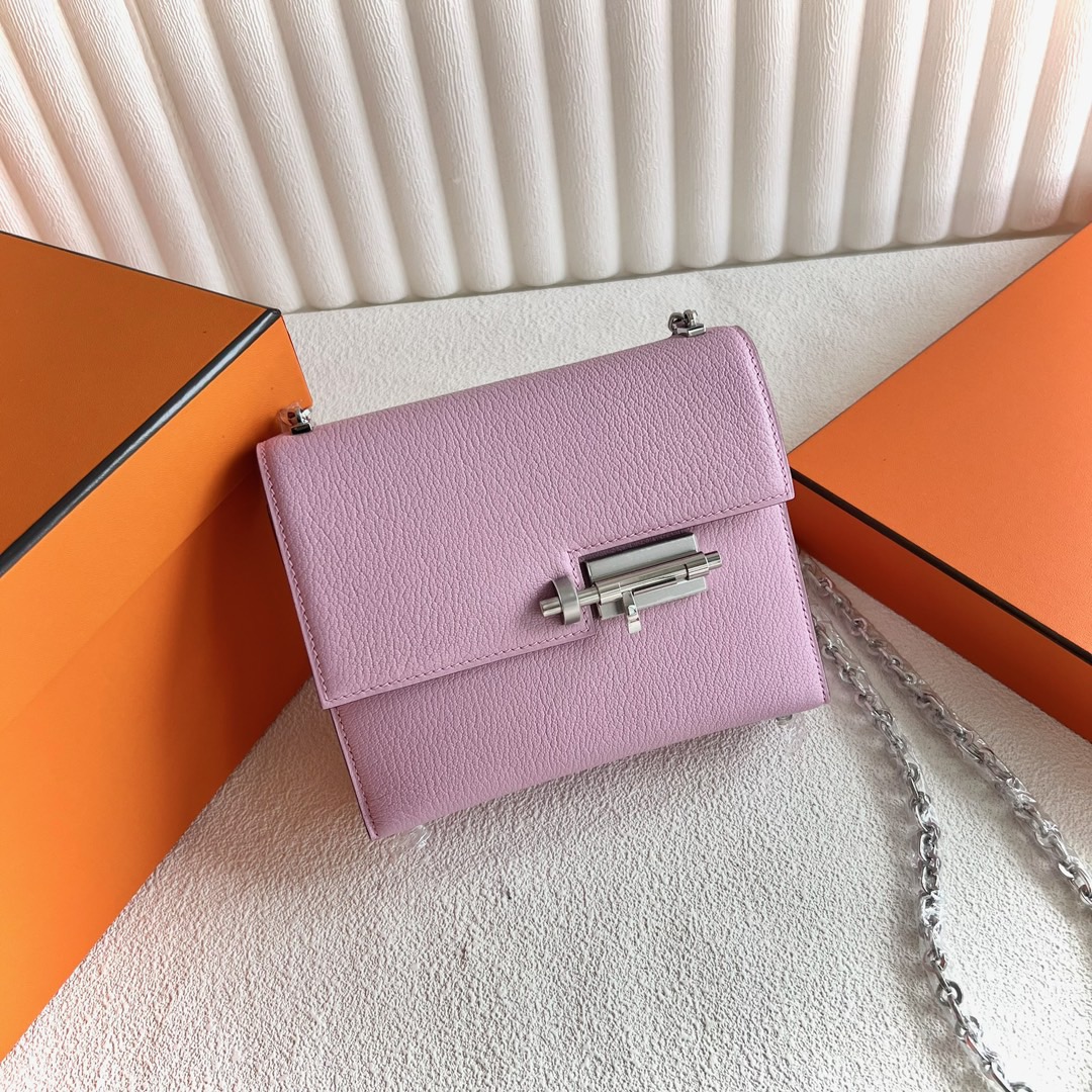 Dubai Hermes Verrou MINI Chevre leather CKX9 Mauve Sylvestre Palladium Hardware