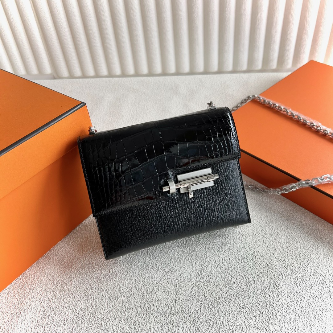 United Arab Emirates Dubai Hermes Verrou Mini Touch Chevre/Shiny Alligator Crocodile Noir