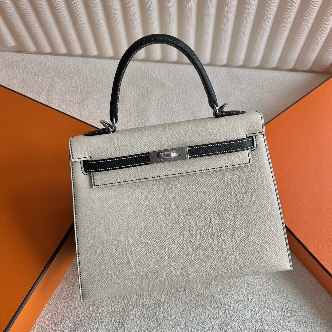 Hong Kong Hermes Kelly 25 Bag HSS Epsom Craie Noir Palladium Hardware Stamp W