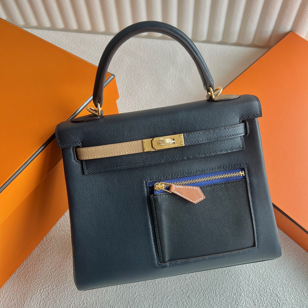 Hong Kong Hermes Kelly 25 Colormatic Pocket bag Swift Blue Nuit Stamp B