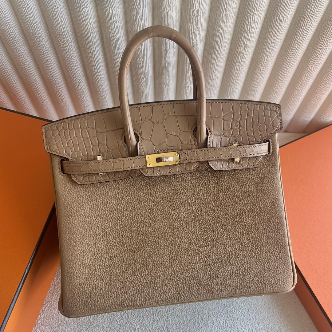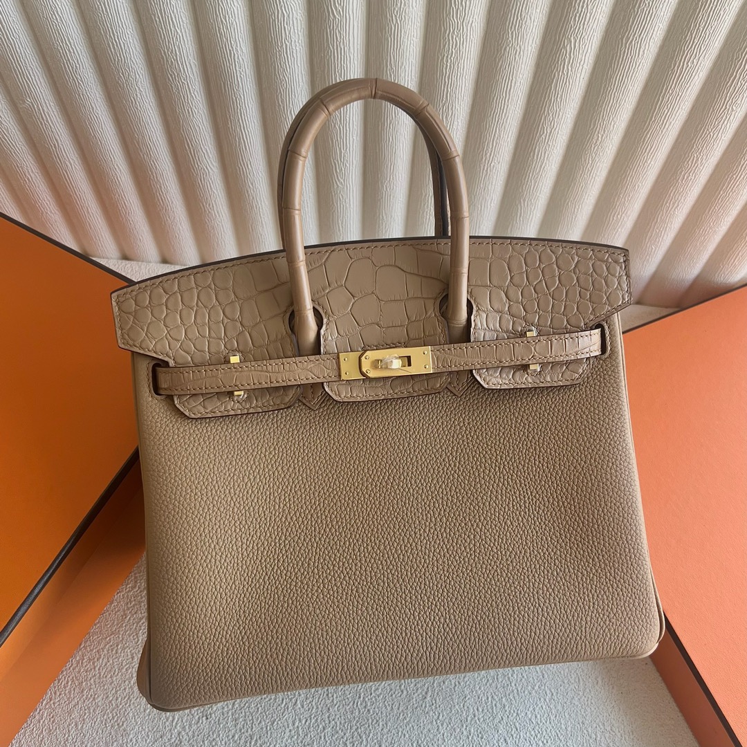 Hermes Birkin 25 Touch Togo And Matte Alligator crocodile Chai Gold Hardware