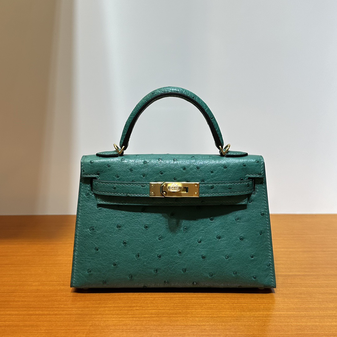 Hermès Kelly Mini Sellier Klein Karoo Original Ostrich U4 Vert Vertigo Gold Hardware