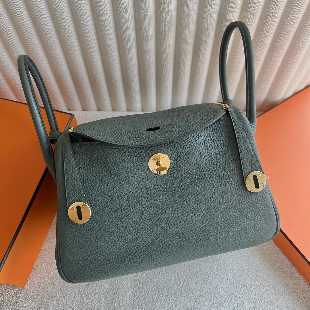 Hermès Lindy 26 Taurillon Clemence CC63 Vert Amande Gold Hardware