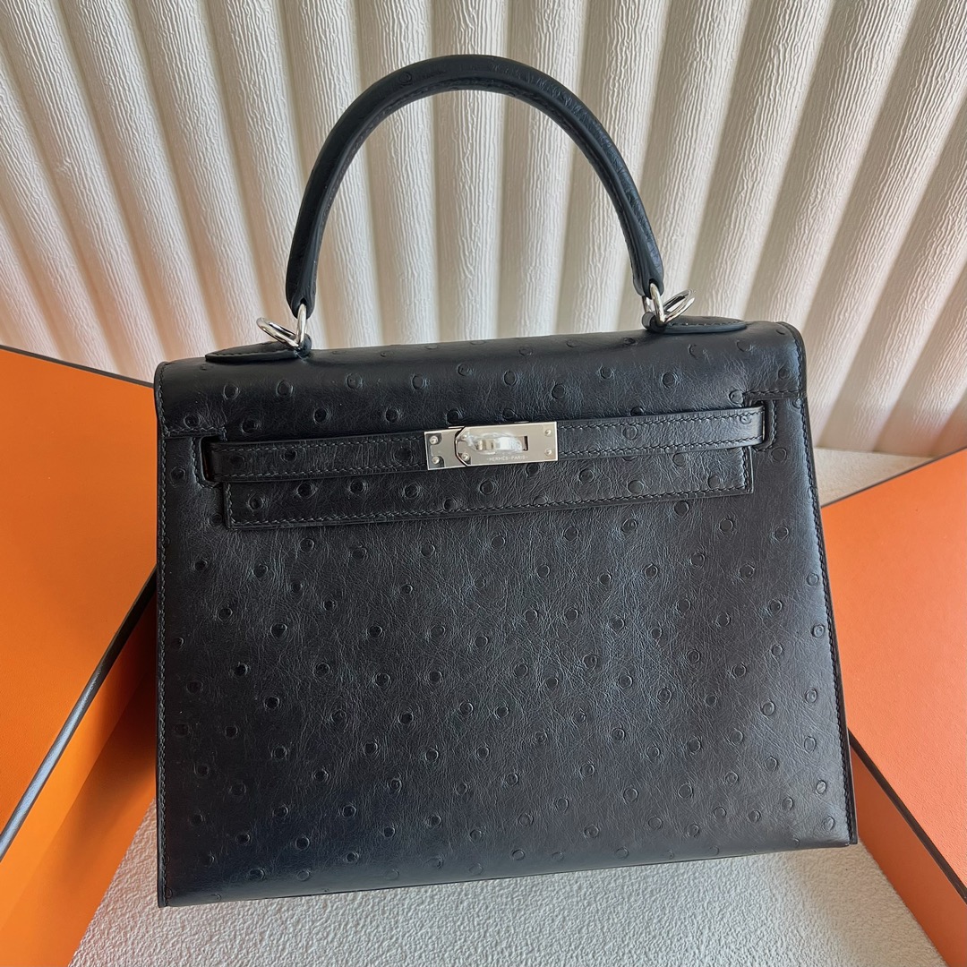 Hermès Kelly 25 Ostrich Leather Ck89 Nior Palladium Hardware