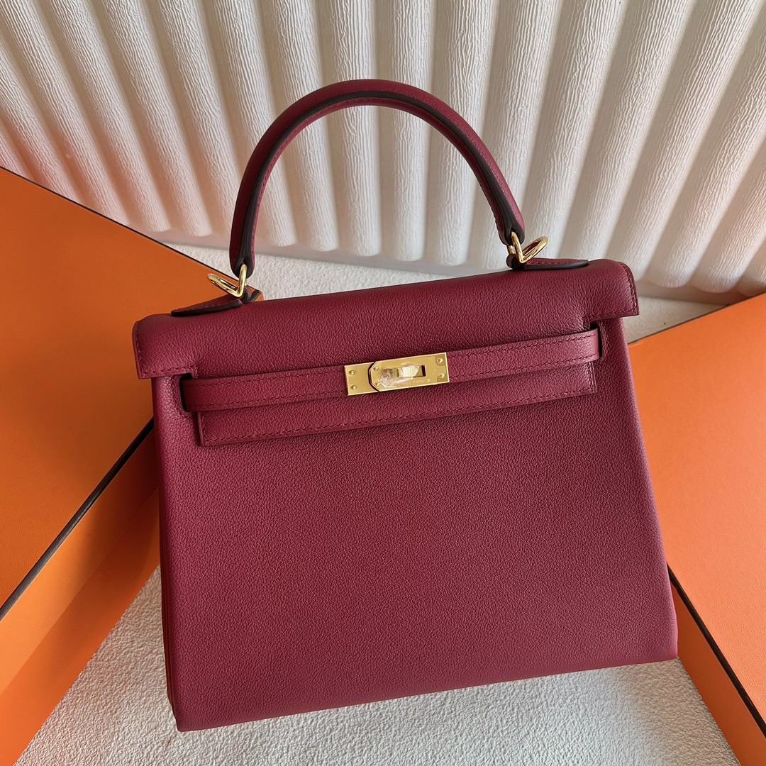 Hermès Kelly Retourne 25 Evercolor Leather K1 Rouge Grenat Gold Hardware