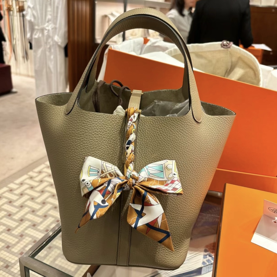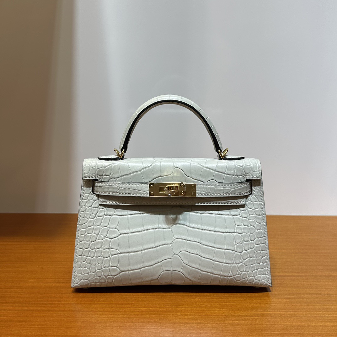 Macao Hermes Mini Kelly Pochette 亮面美洲鳄鱼 CK17 Ficelle 淡灰褐色 烟草色