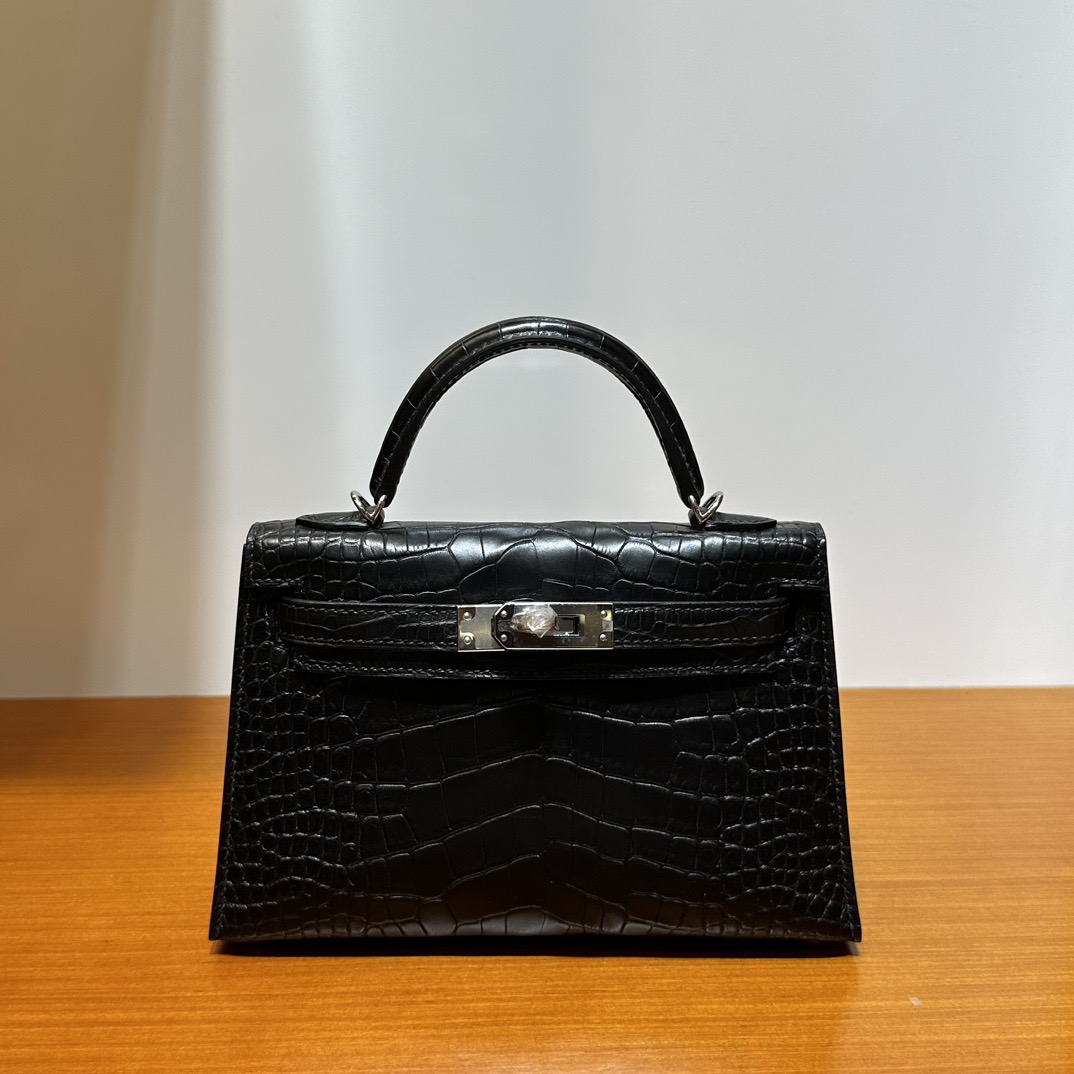 Hermès Kelly Mini Sellier Matte Alligator crocodile Noir Palladium Hardware