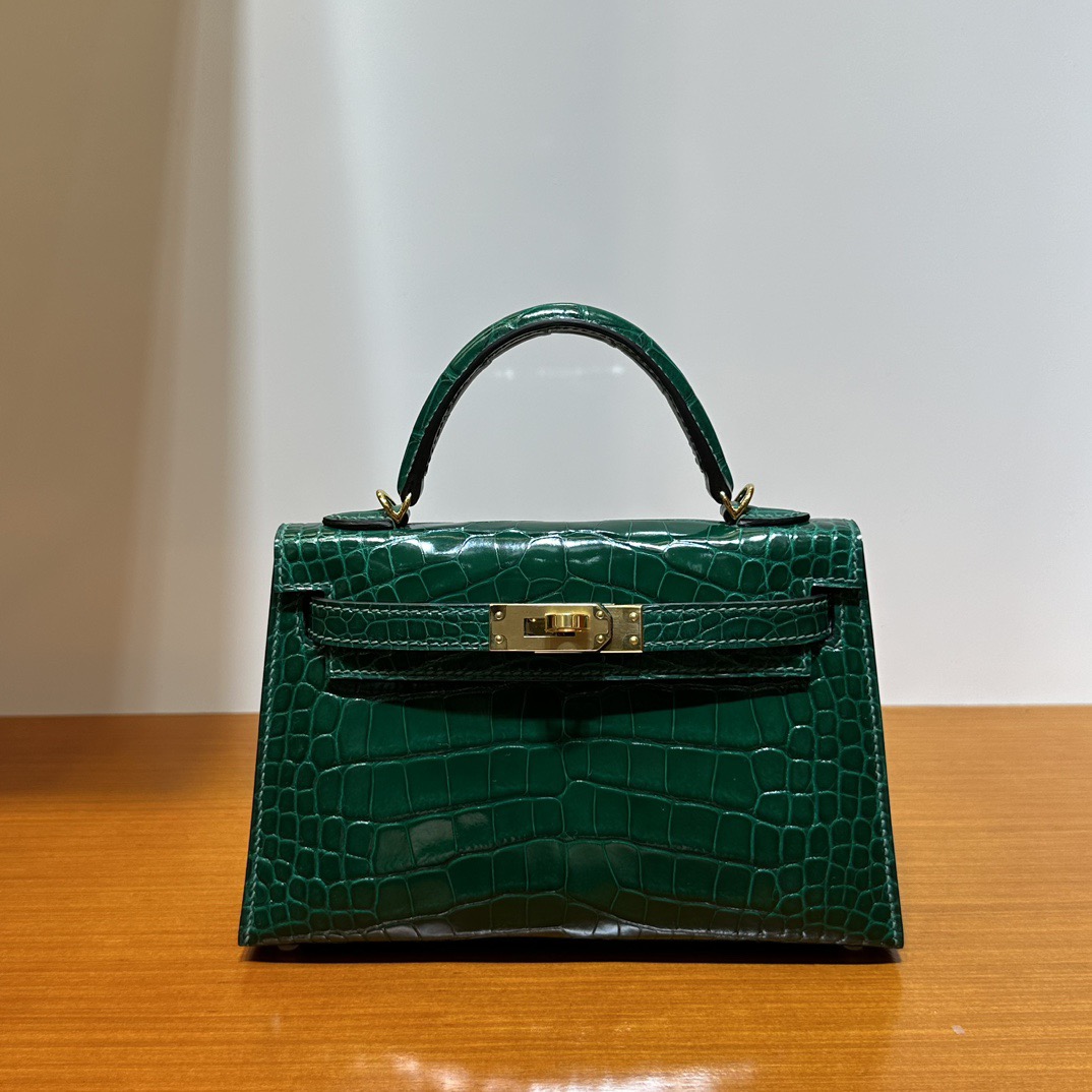 Hermès Kelly Mini Sellier Shiny Alligator Crocodile Vert Émeraude Gold Hardware
