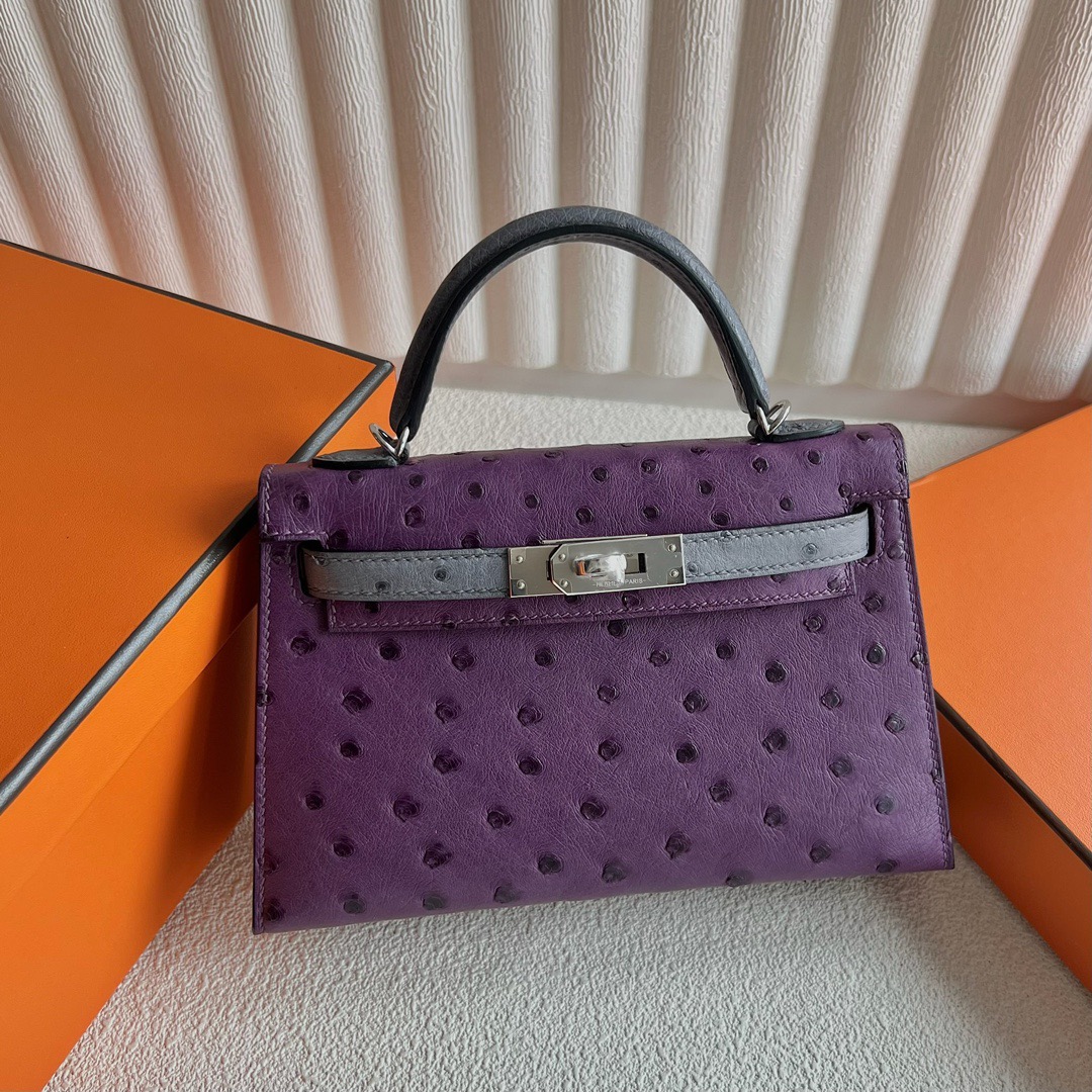 Hermès Special Order HSS Kelly Sellier 20 Klein Karoo Ostrich Q8 Violet Clair And Gris Agathe