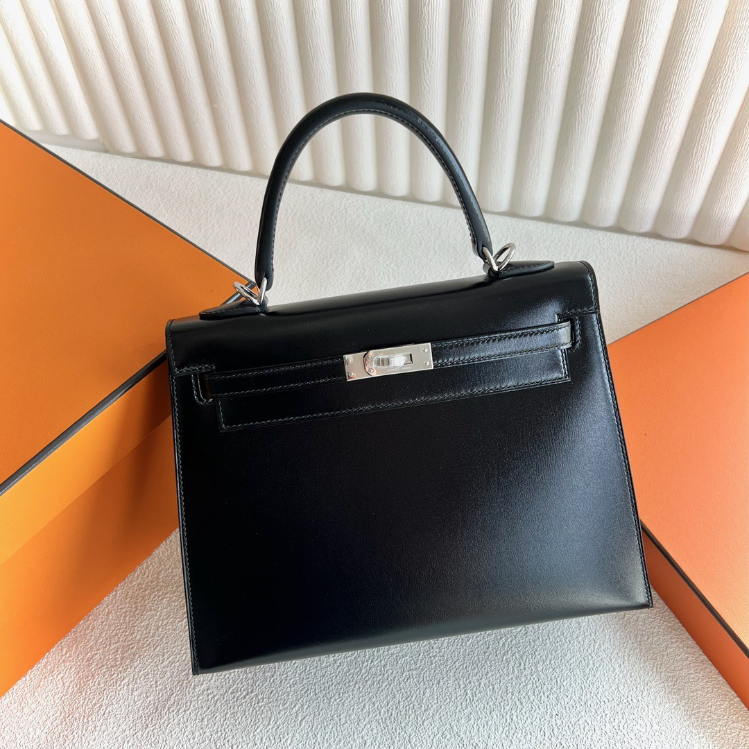 Algeria Hermes Kelly 25 Box Leather CK89 Noir Palladium Hardware