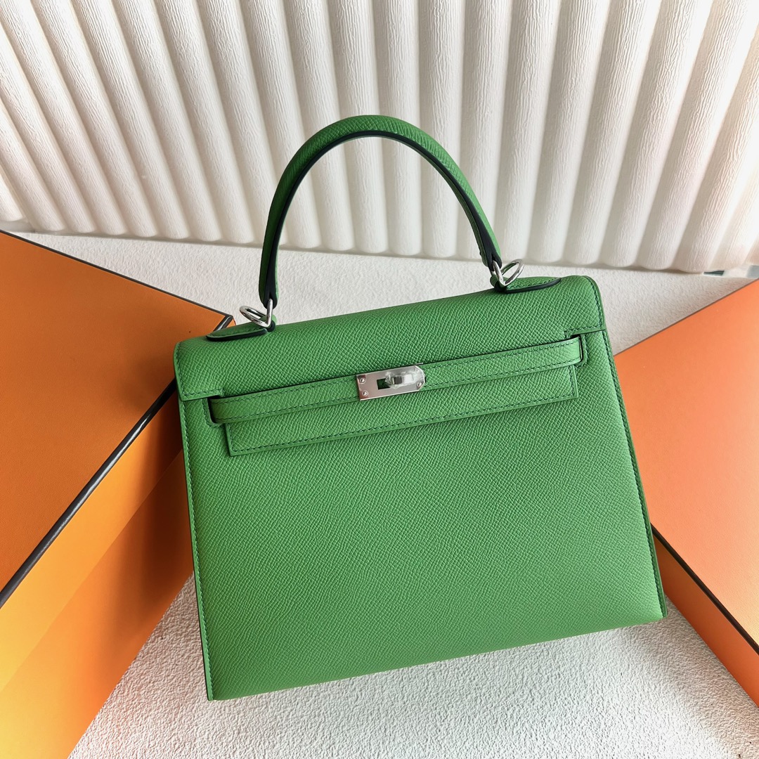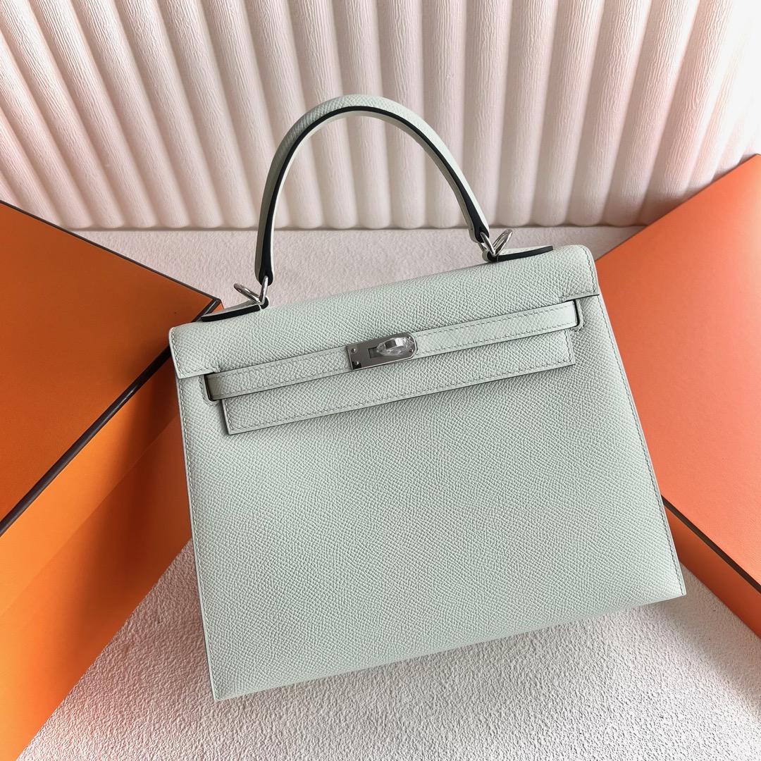 Qatar Hermes Kelly 25 Epsom Leather CK0S Vert Fizz Palladium Hardware