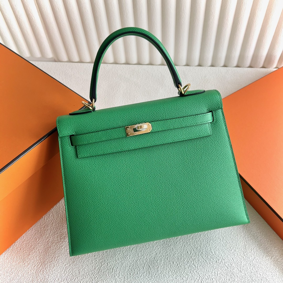 爱马仕包包 San Francisco USA Hermes Kelly 25cm Chevre Mysore 进口 山羊皮 Z6 Malachite 孔雀绿 拼色 CK89 Noir 黑色 金扣 全手工蜜蜡线缝制 客定出