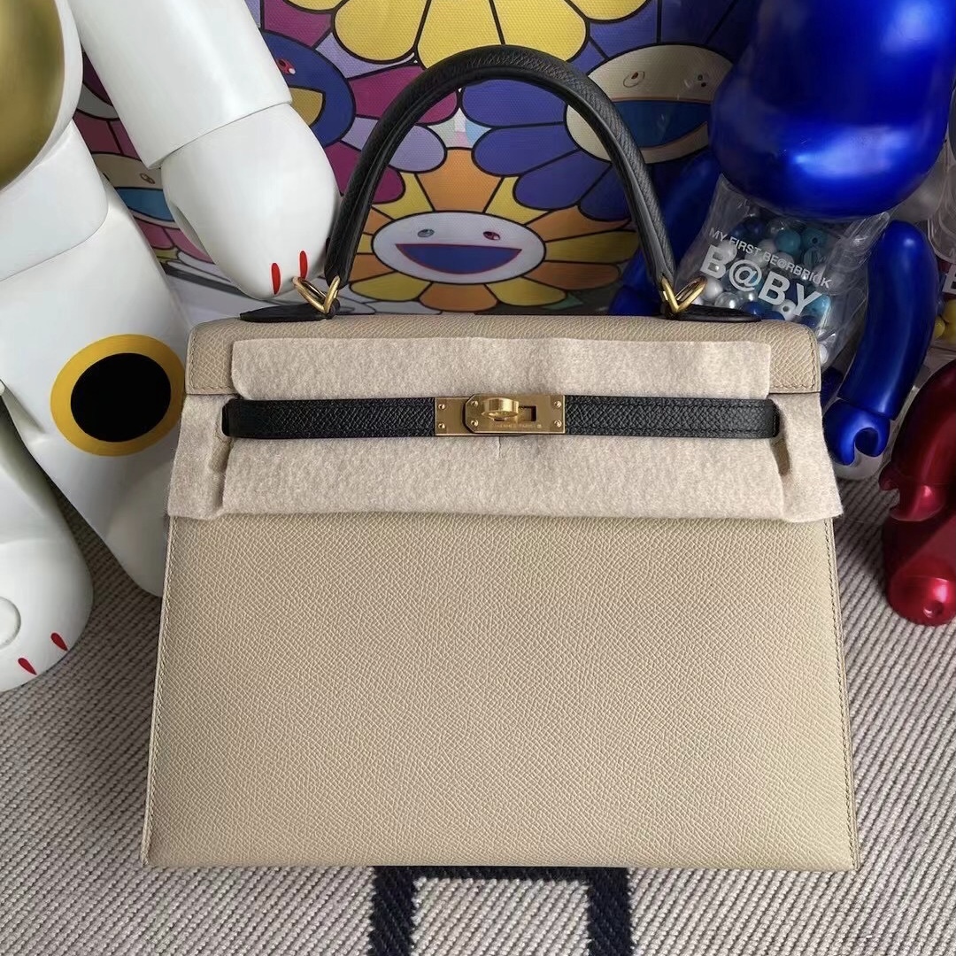 奢侈品爱马仕凯莉包25寸价格 Hermes Kelly 25cm Epsom S2 风衣灰 Trench/CK89 Noir 黑色 磨砂金扣 Frosted gold button 全手工蜜蜡线缝制 in stock