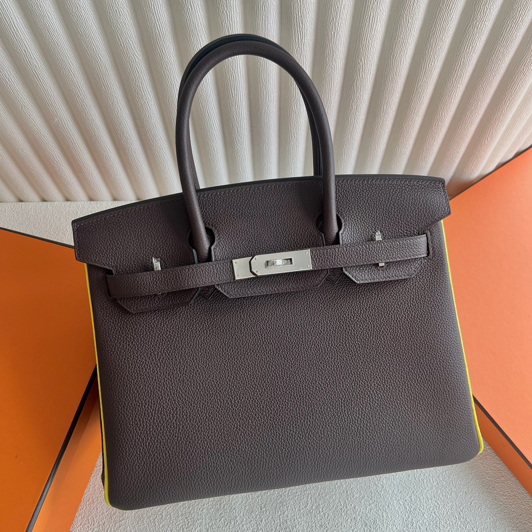 Hermès Birkin 30cm Togo CK46 Ebene /9R Lime Palladium Hardware