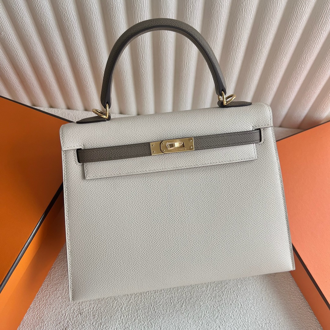 Hermès Kelly 25 Epsom Leather Craie and Etoupe Gold Hardware