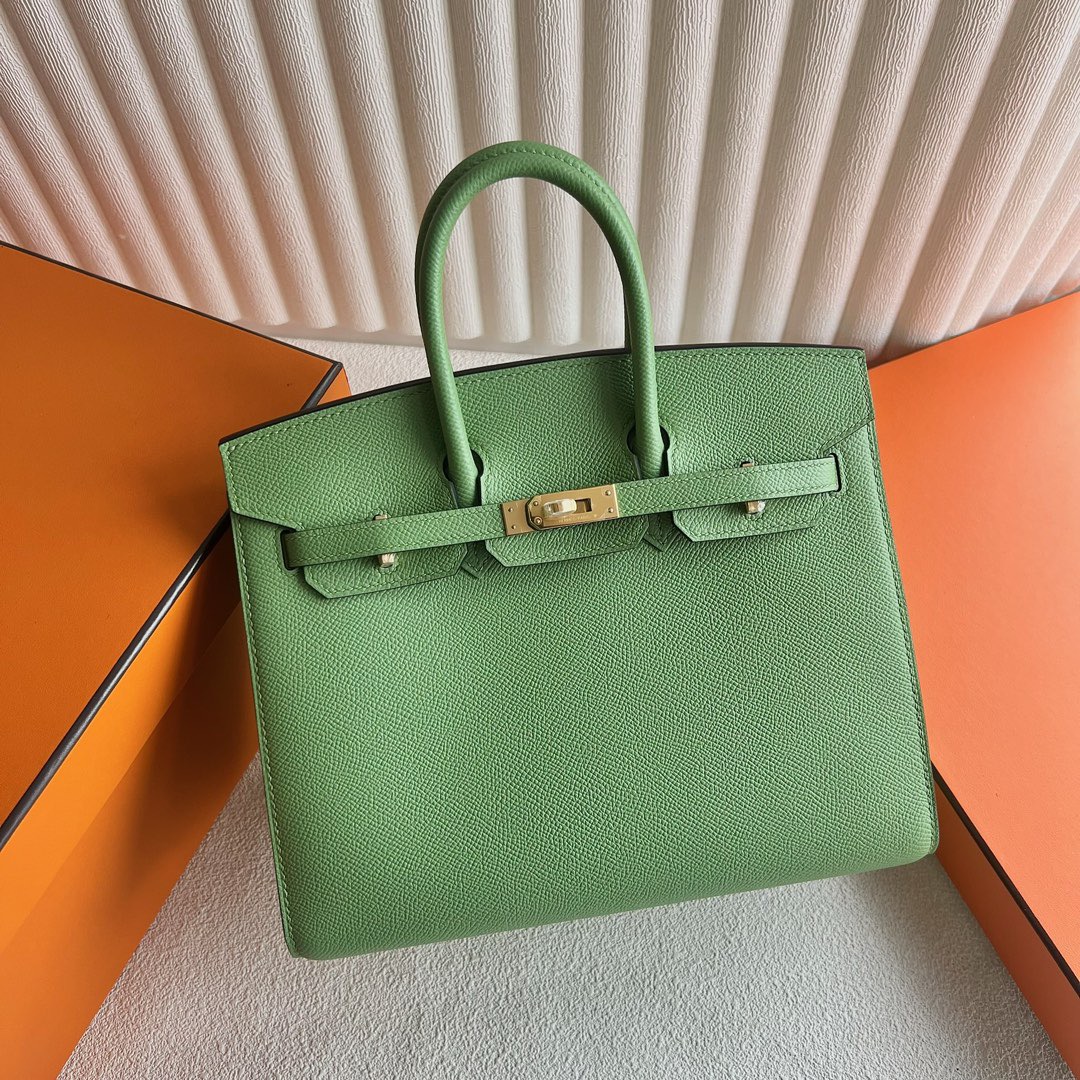Hermes Birkin 25 Sellier Epsom Leather CC3I Vert Criquet Gold hardware