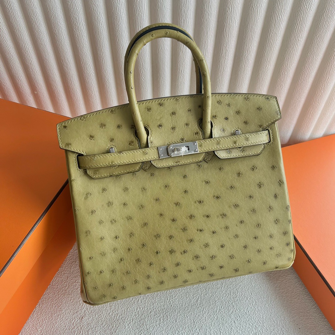 Hermes Birkin 25 Klein Karoo Ostrich 6G Peiouse Pelouse Palladium Hardware Stamp Z