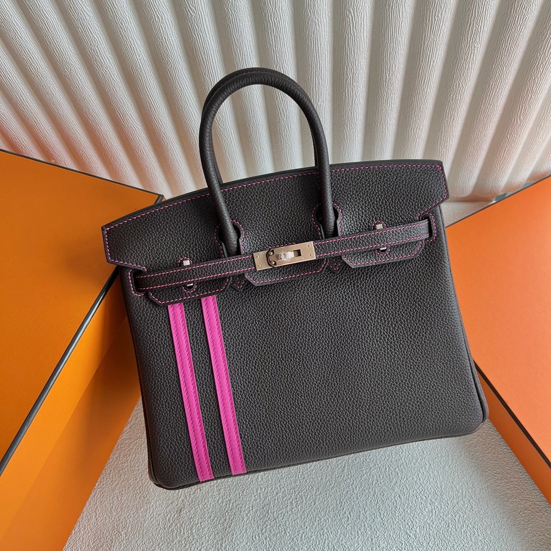 Hermes Birkin 25 Togo And Swift Chocolat Rose Tyrien Rose Gold Hardware Stamp W