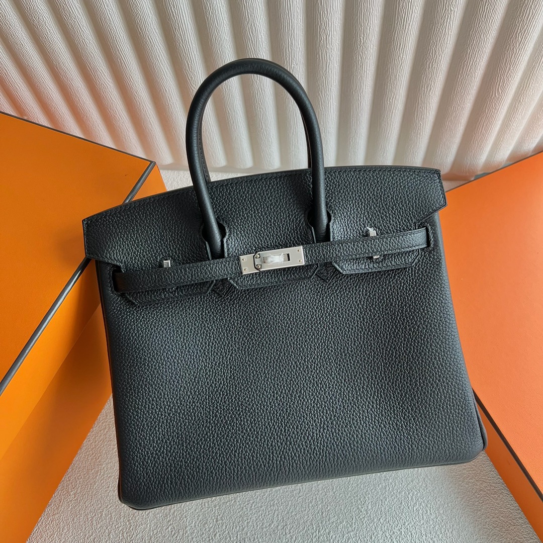 Hermes Birkin 25 Togo Noir And Bleu Jean Palladium Hardware Stamp W