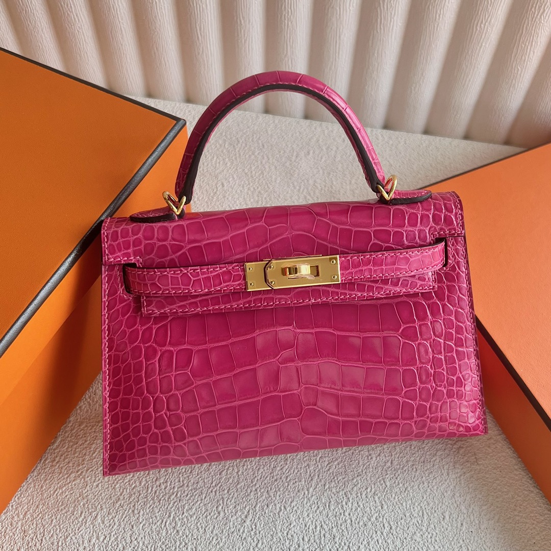 Hermès Kelly Mini Sellier Shiny Alligator Crocodile 5J Rose Fuchsia Gold Hardware