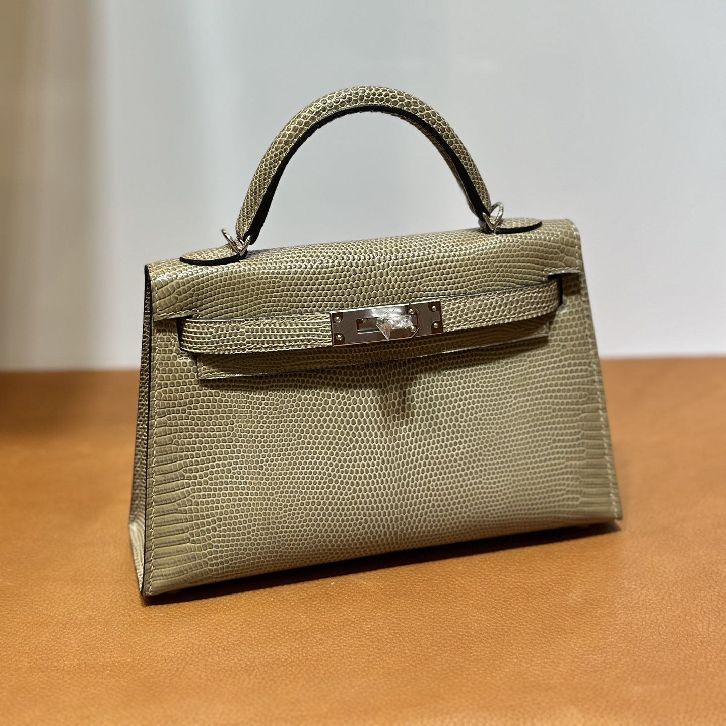 Oman Hermes Kelly Mini Bag Lizard CK17 Ficelle Palladium Hardware