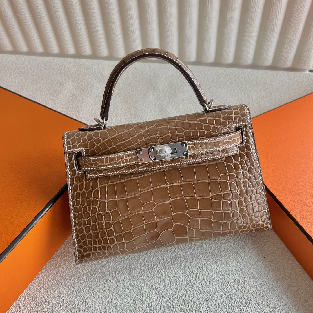 台湾爱马仕包包官网 Taiwan Hermès 雾面美洲鳄鱼 Kelly Mini II 2代 2H Kraft 牛皮纸色 全手工蜜蜡线缝制 接受订制