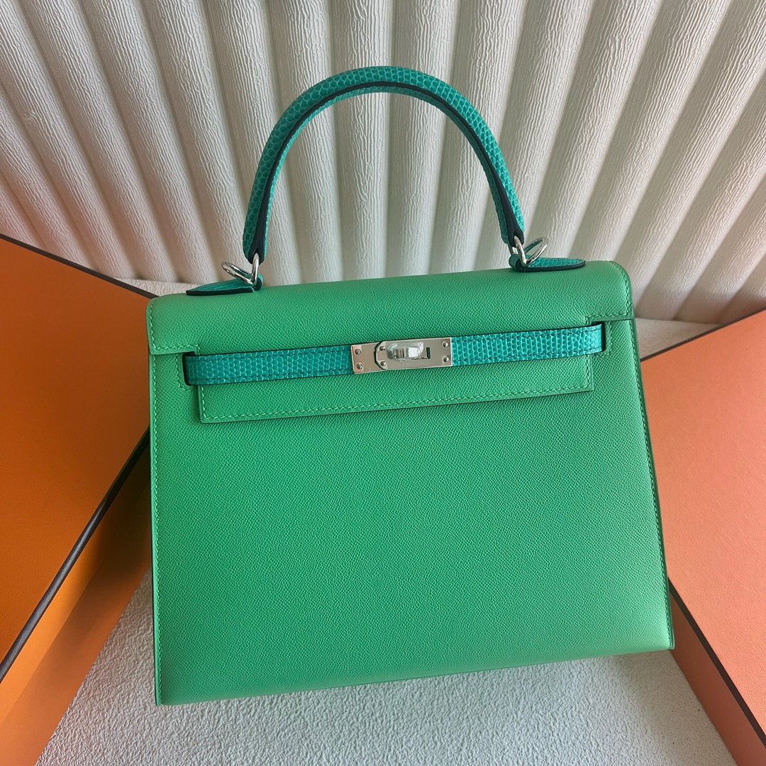 Hermes Kelly 25 Touch Madame/Lizard 0Z Vert Comics And 6W Menthe Palladium Hardware