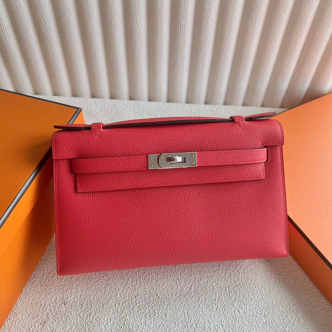 Hermès Kelly Pochette Original Ostrich Leather Griss Perle Palladium Hardware Stamp W