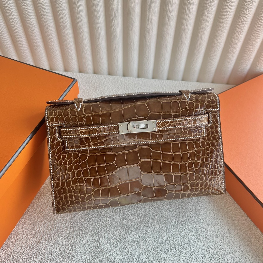 Hermès Mini Kelly Pochette Shiny Alligator Crocodile CK17 Ficille Palladium Hardware