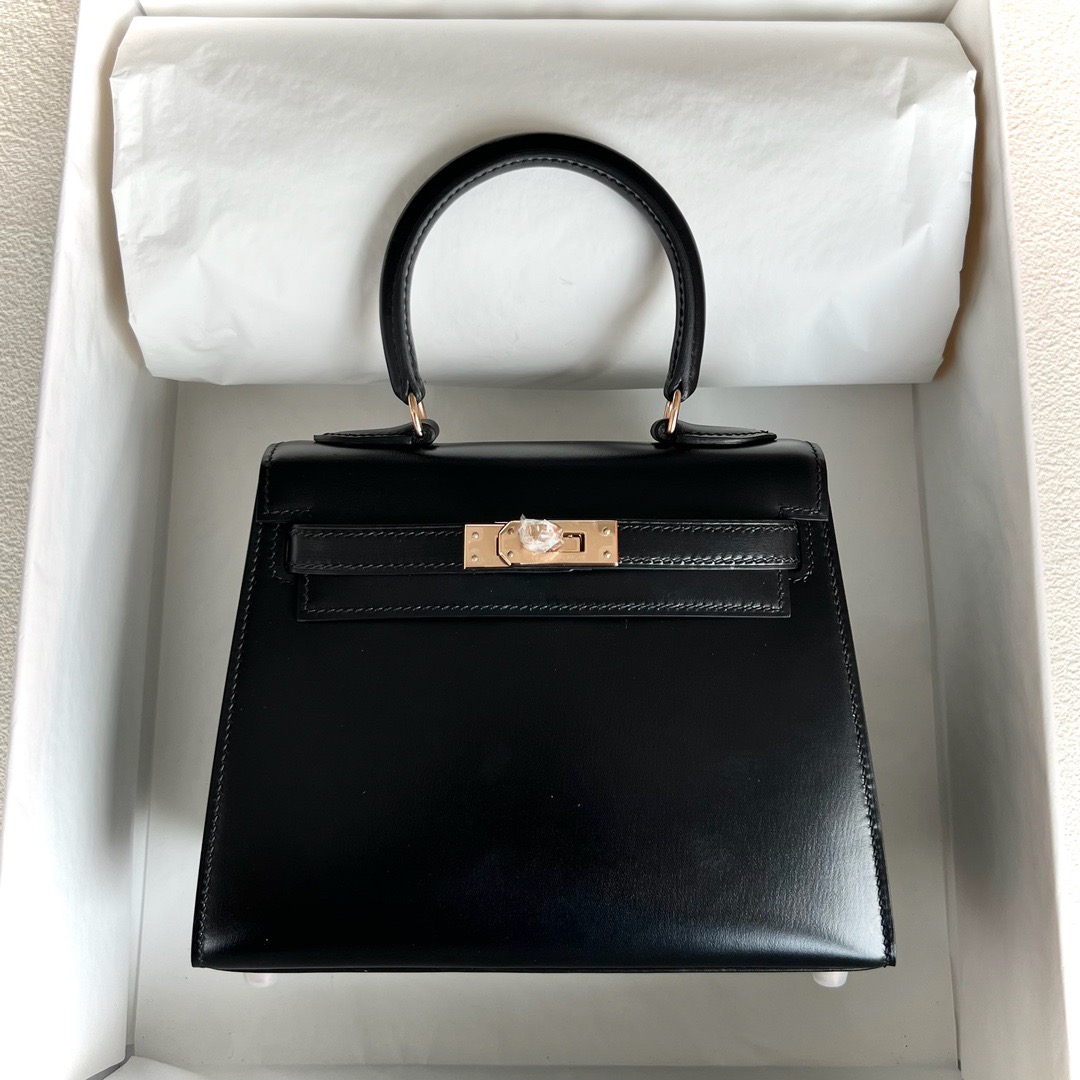 United Arab Emirates Dubai Hermes Kelly Sellier 20cm Box leather CK89 Noir 黑色 Rose Gold Hardware