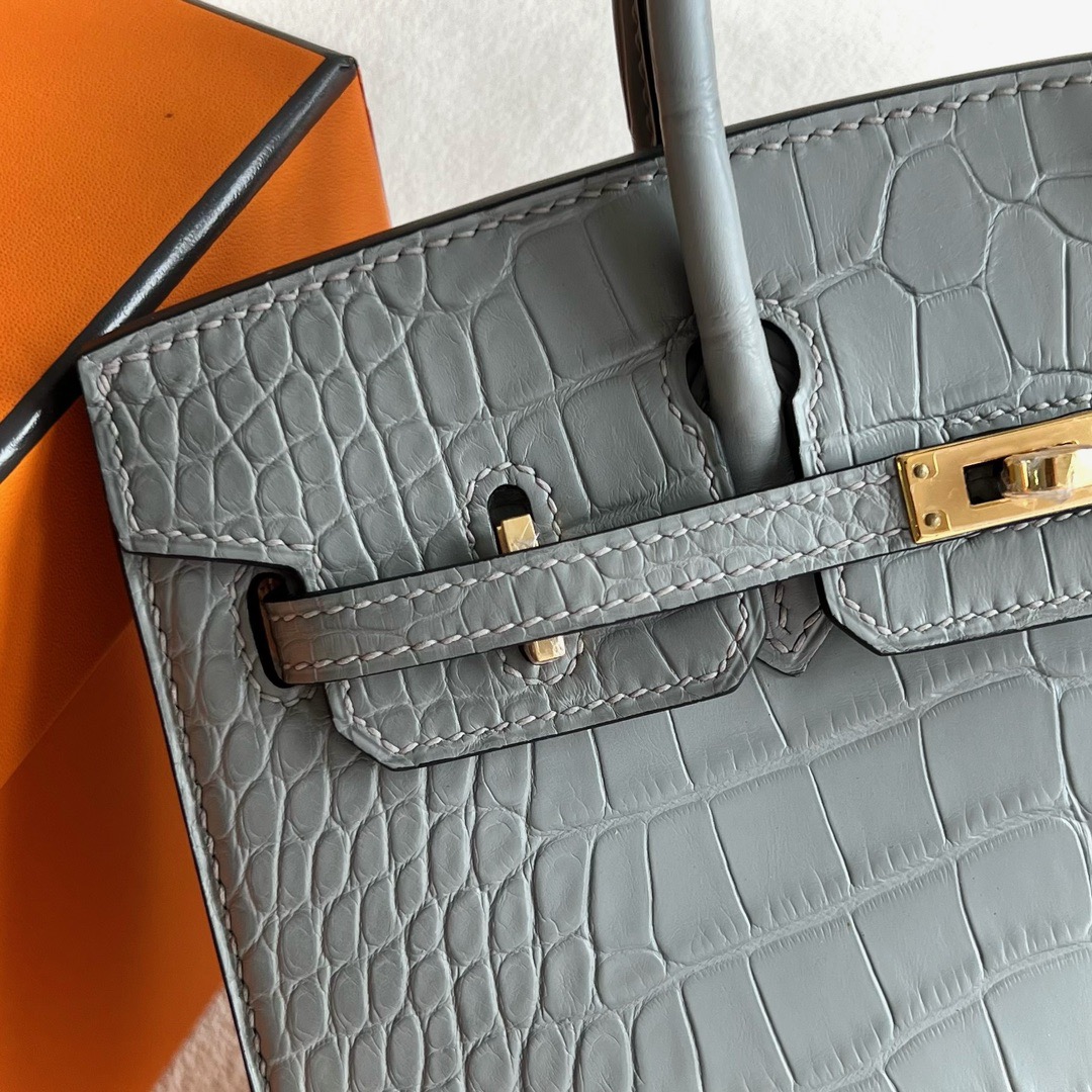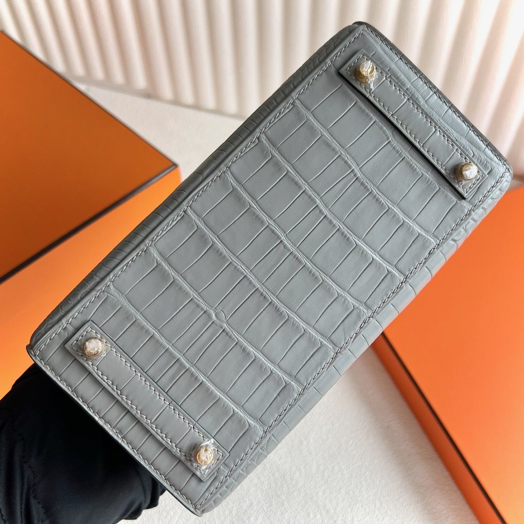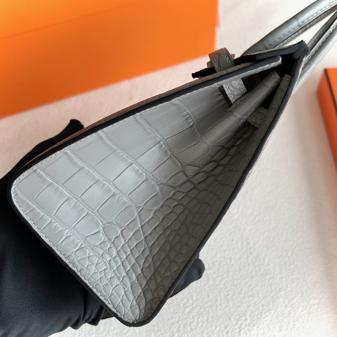 Kuwait Hermes Birkin 20cm Sellier Matte Mississippiensis Alligator 0W Gris Neve 水晶灰 Gold Hardware