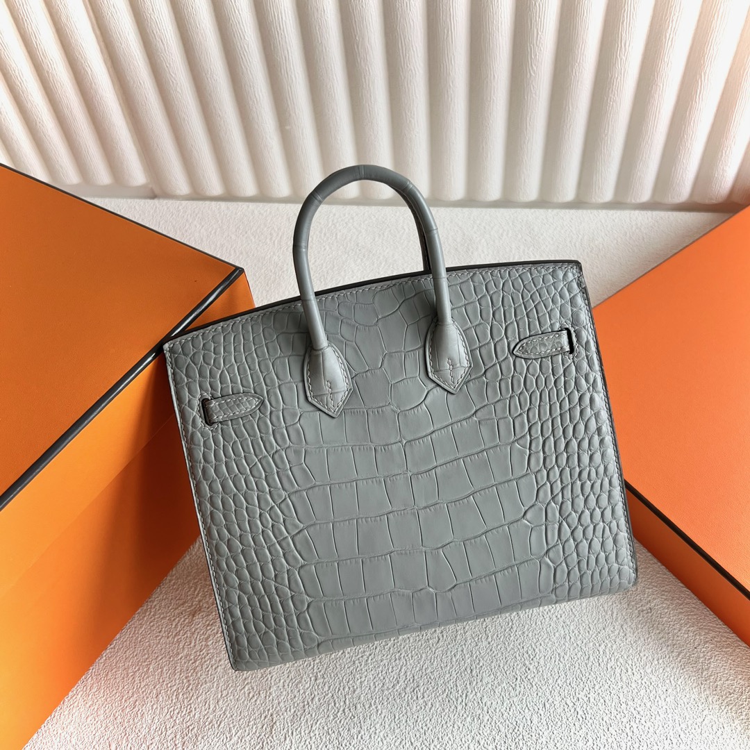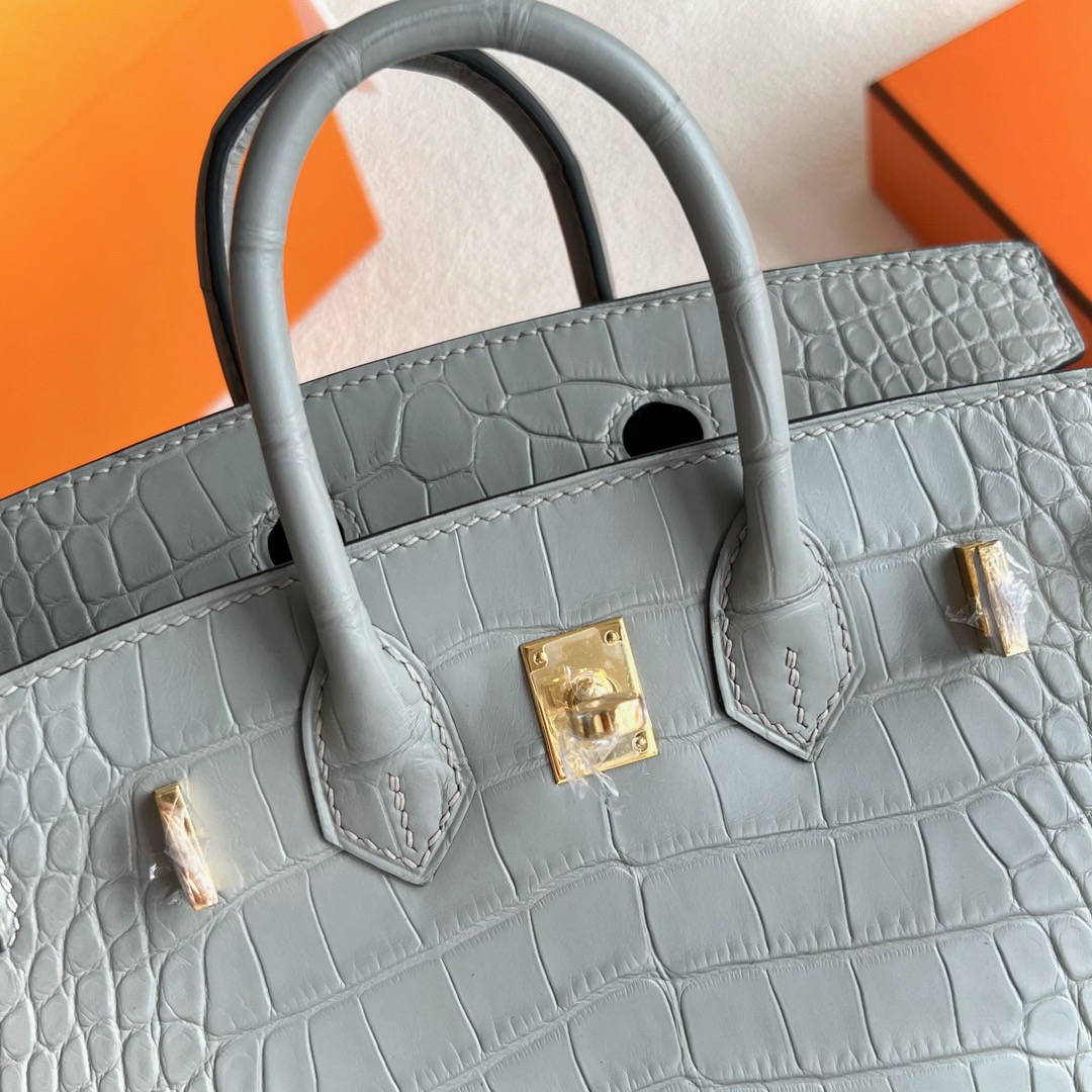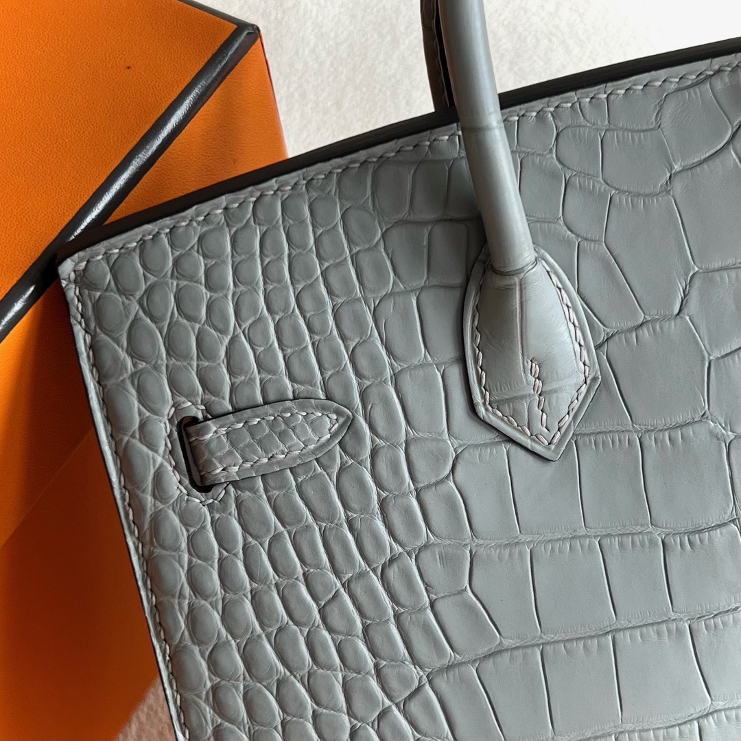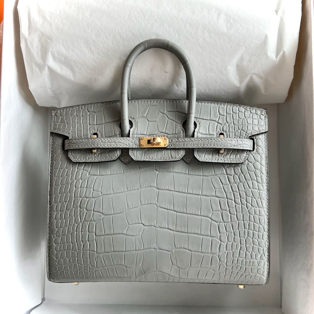 Kuwait Hermes Birkin 20cm Sellier Matte Mississippiensis Alligator 0W Gris Neve 水晶灰 Gold Hardware