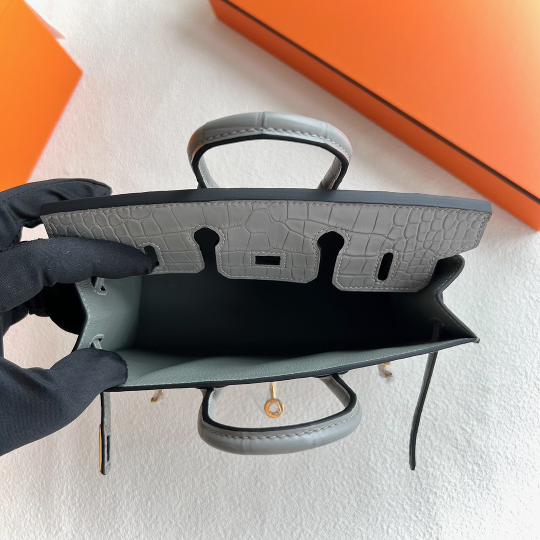 Saudi Arabia Hermes Birkin 20 Sellier Matte Mississippiensis Alligator Gris Neve