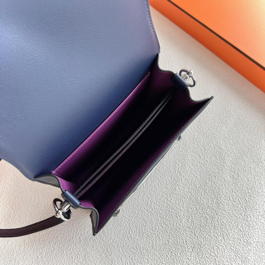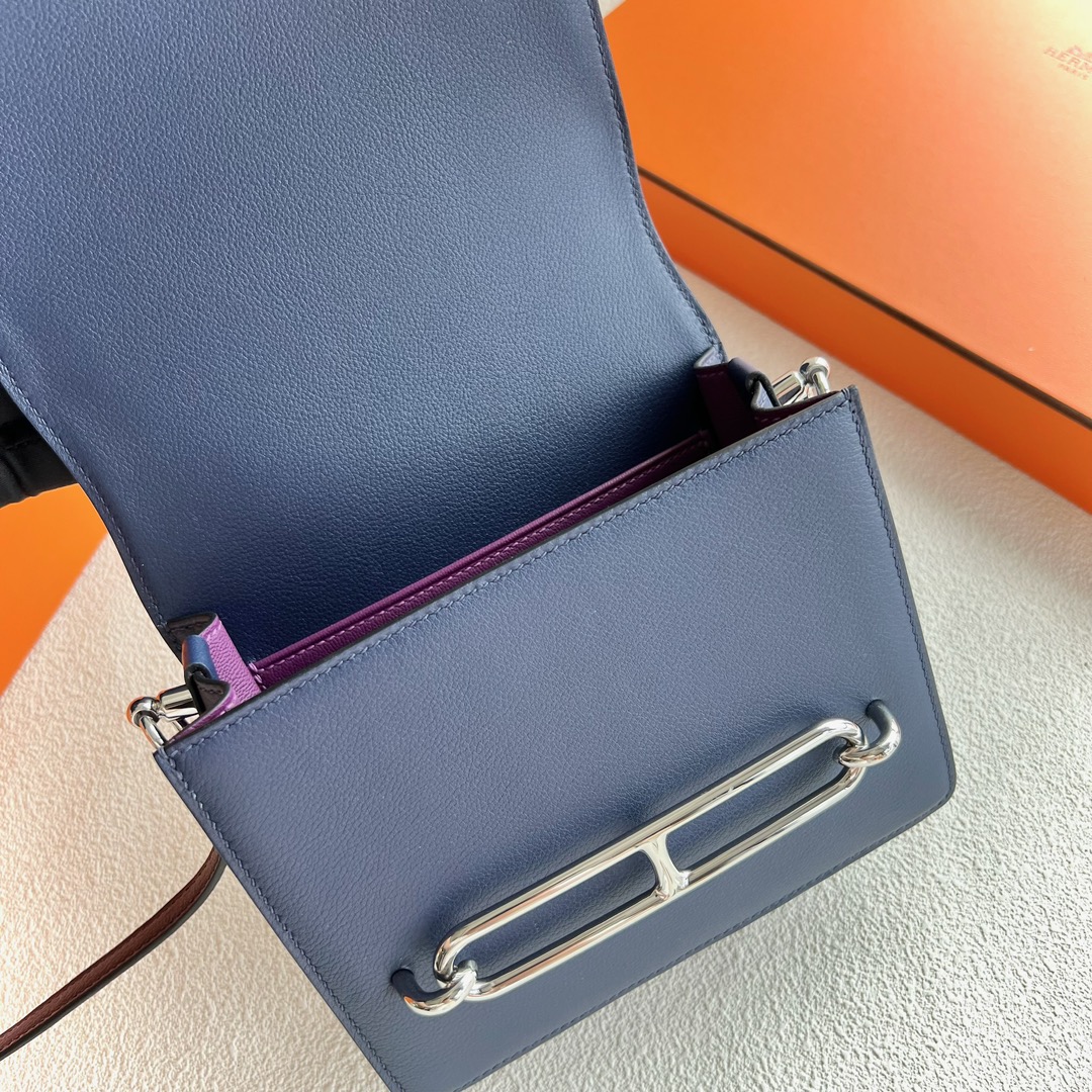 Kuwait Hermes Roulis Mini 18cm Swift Leather CK73 Bleu Saphir 宝石蓝 And CKP9 Anemone 海葵紫 Palladium Hardware