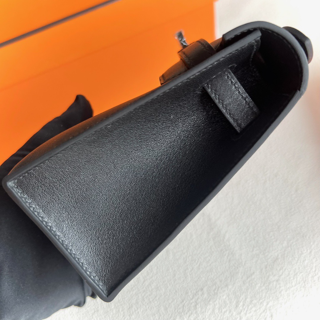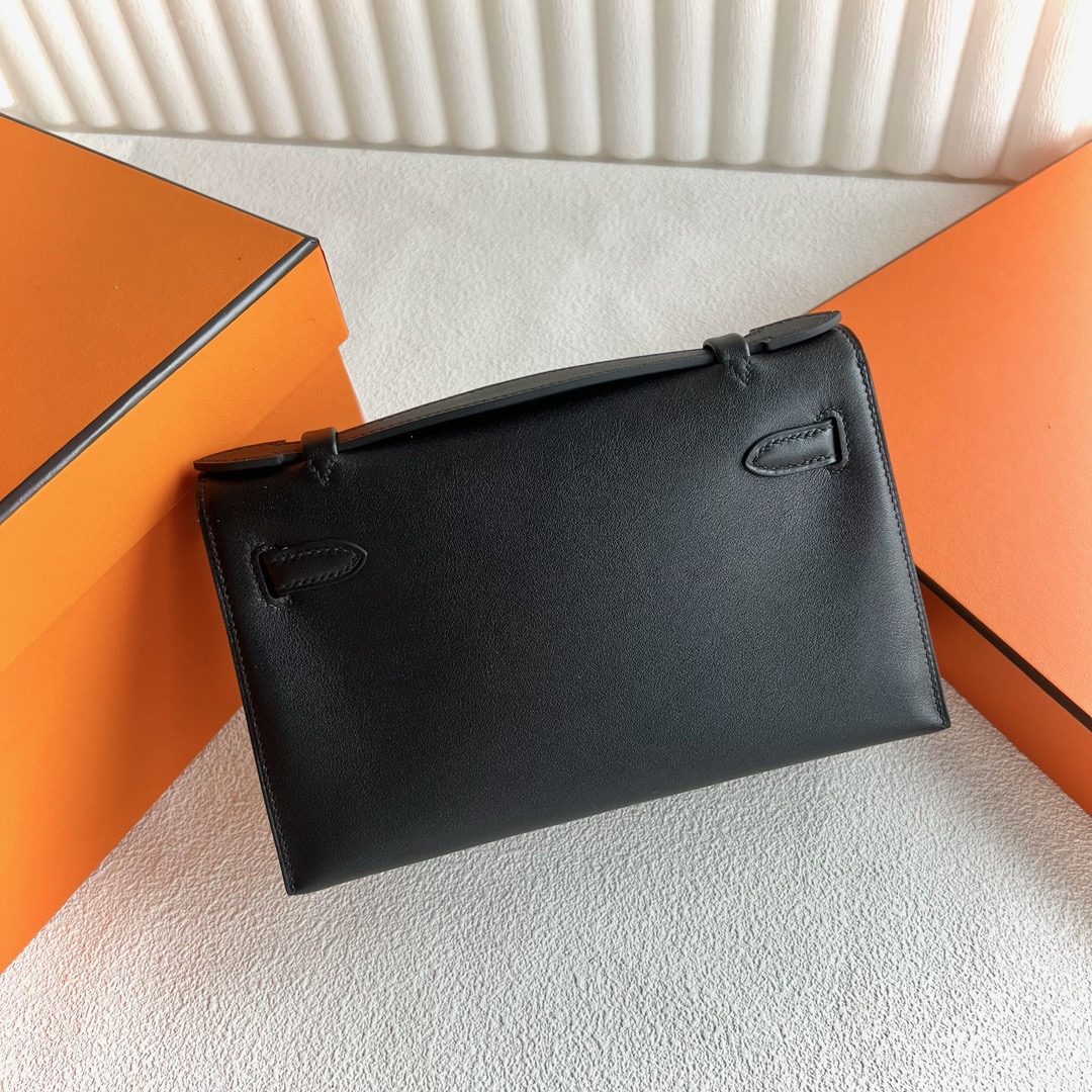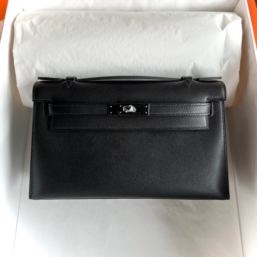 Hermes Mini Kelly Pochette 22cm Swift Leather PVD 89 Noir 黑色 So Black