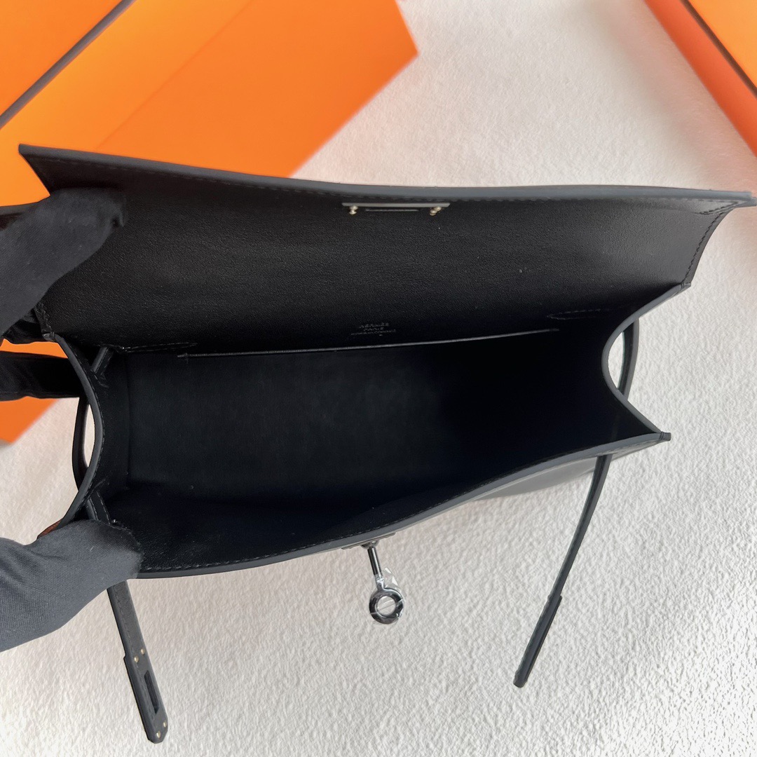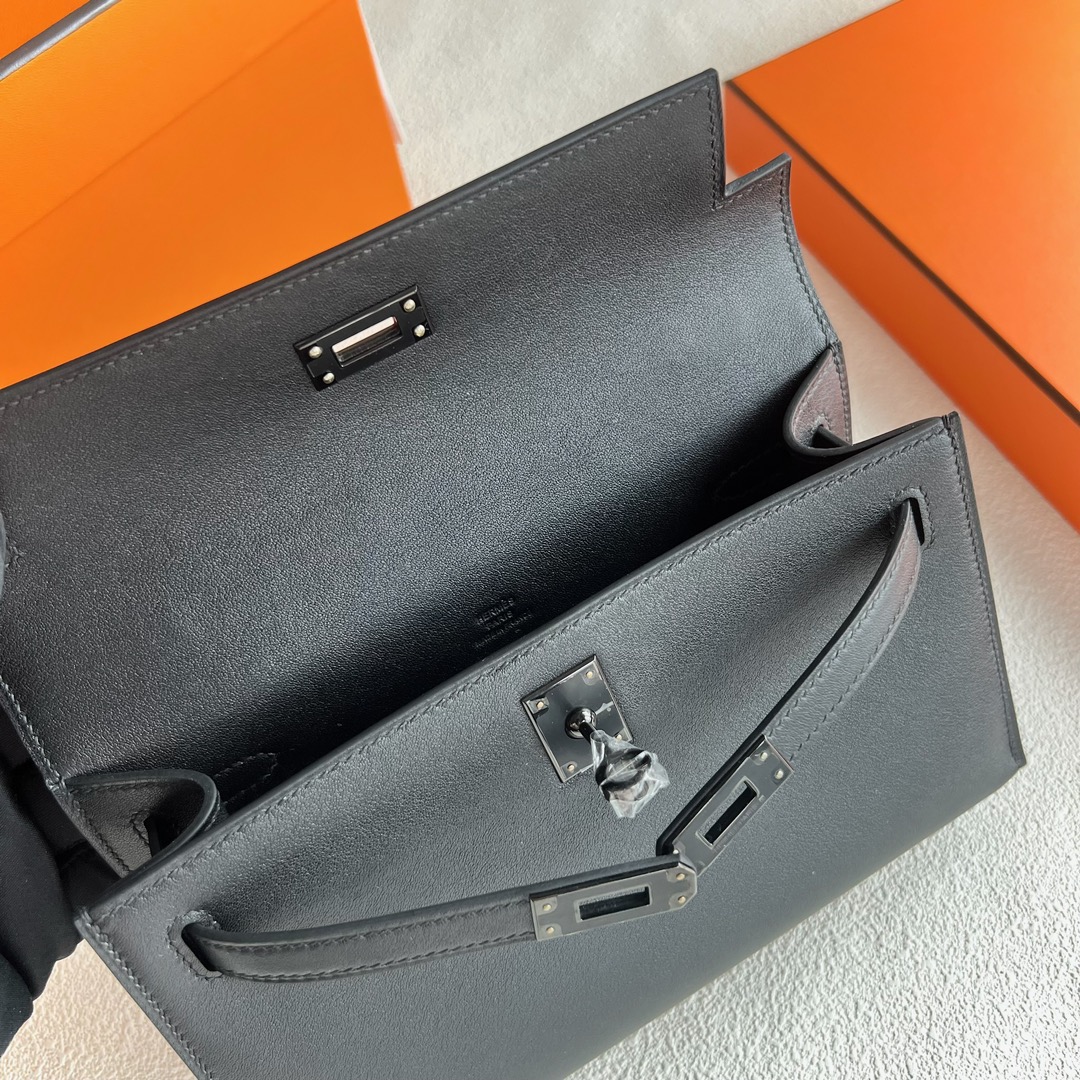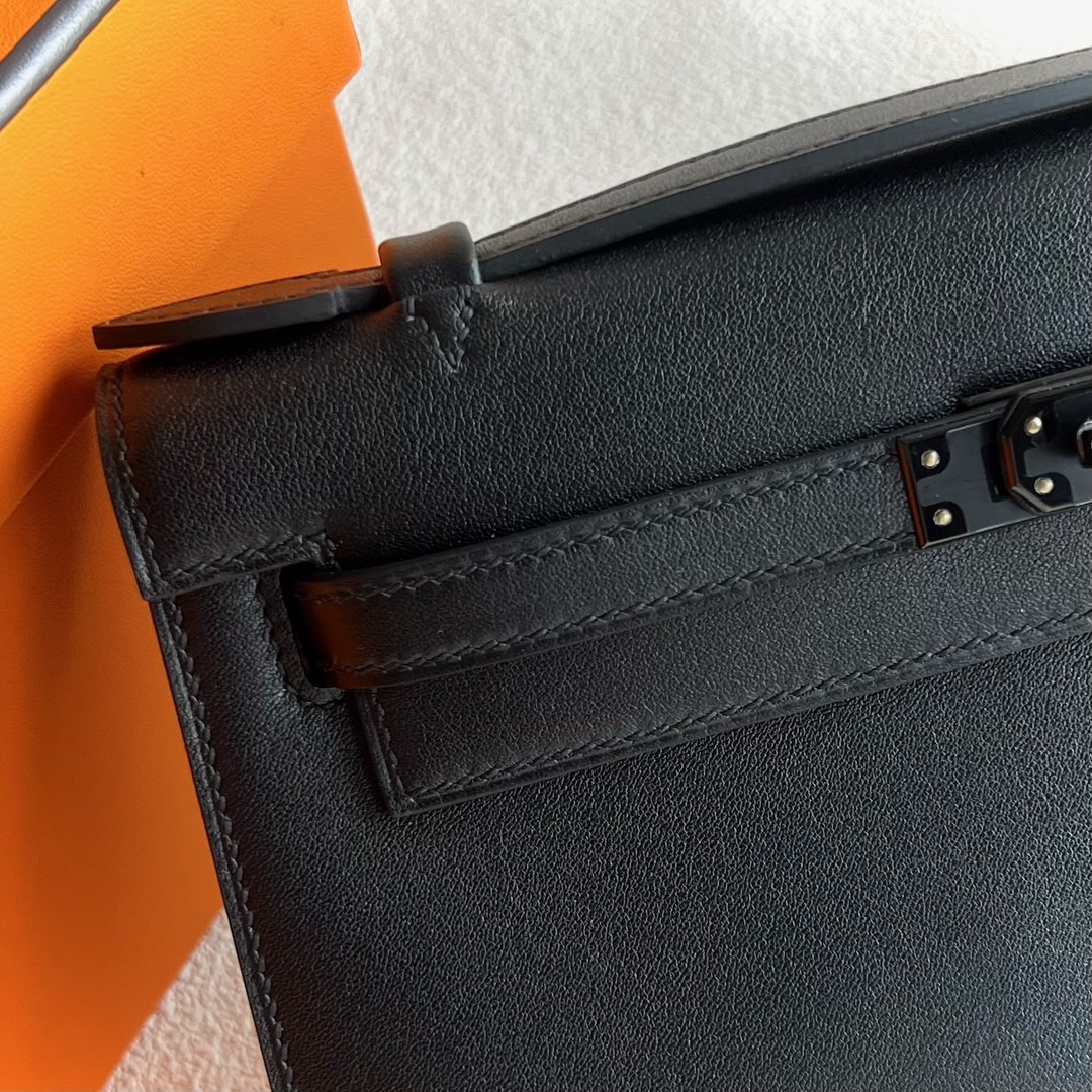 Hermes Mini Kelly Pochette 22cm Swift Leather PVD 89 Noir 黑色 So Black