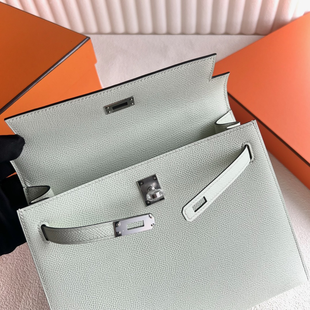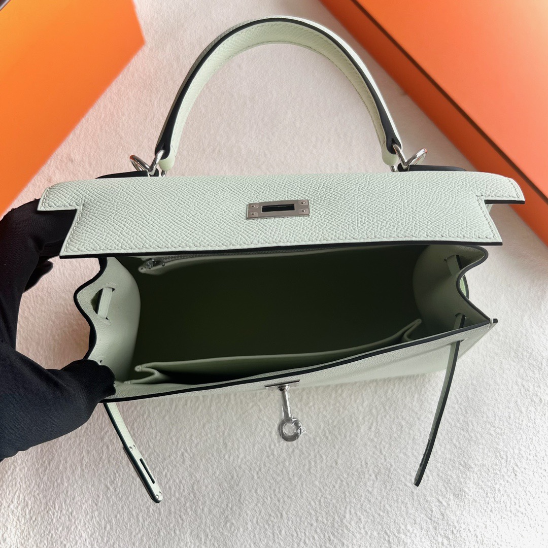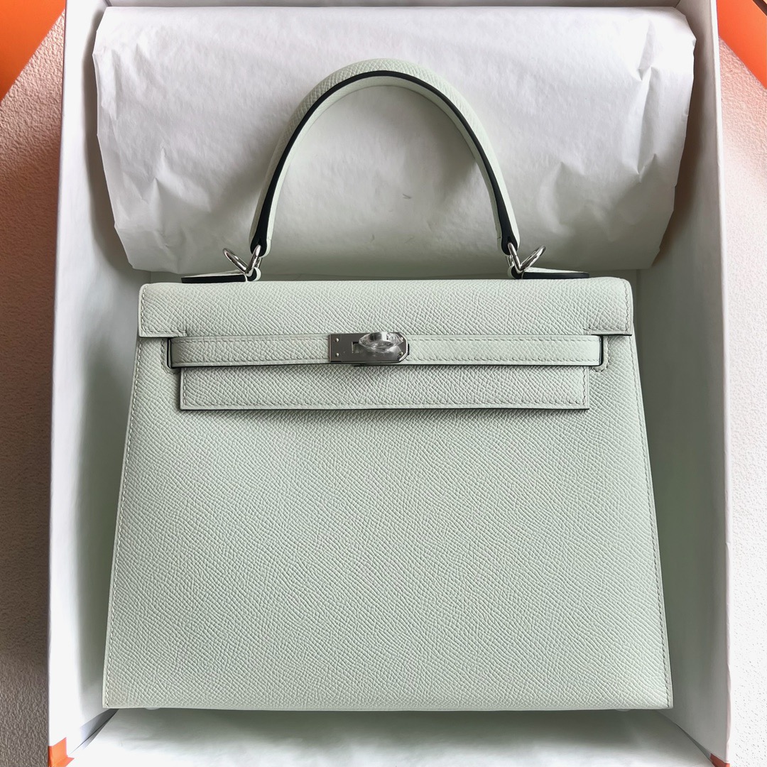 Qatar Hermes Kelly 25cm Epsom Leather CK0S Vert Fizz 气泡绿 Palladium Hardware