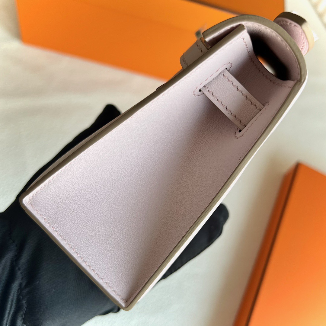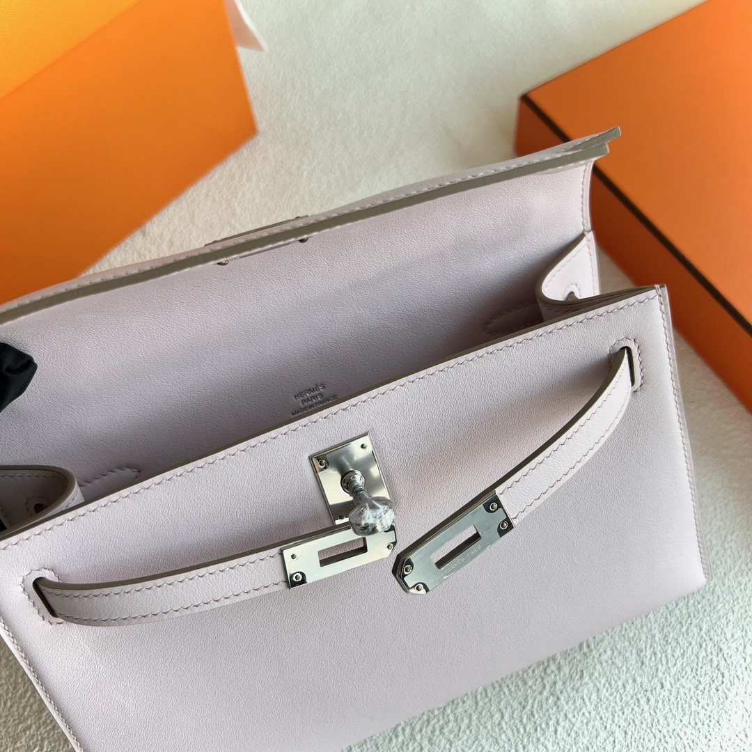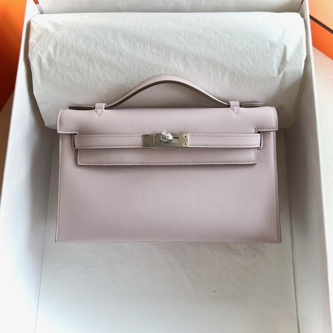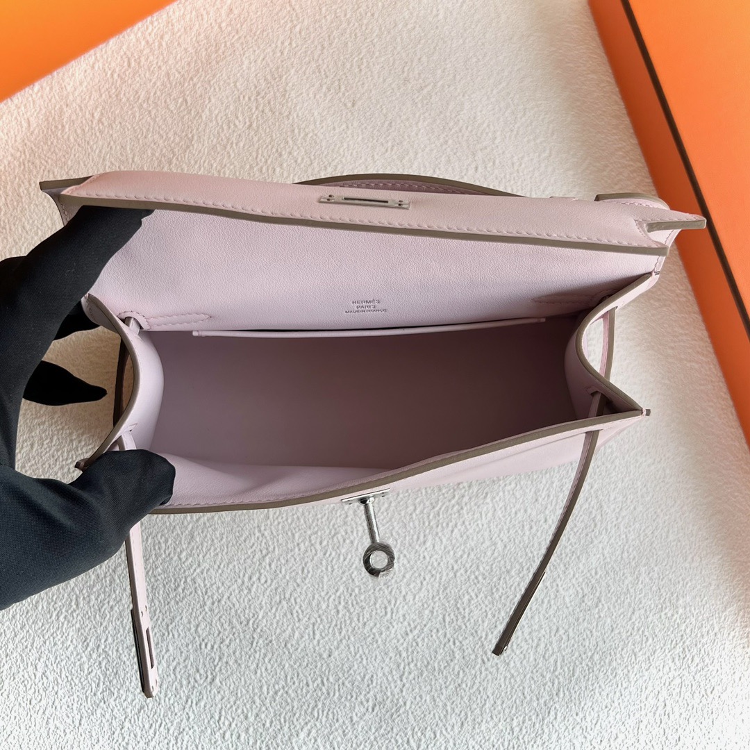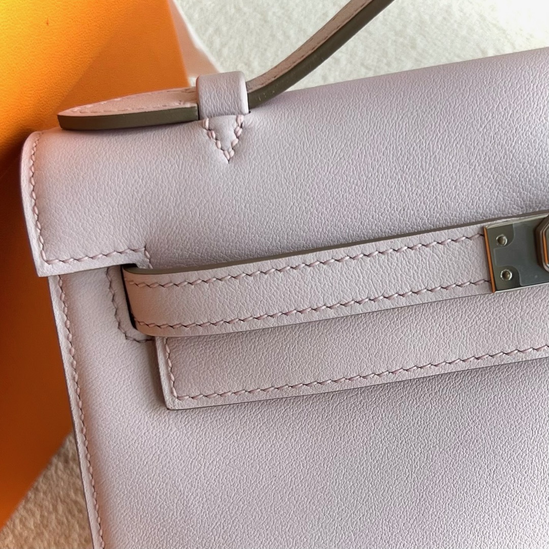 Algeria Hermes Mini Kelly Pochette 22cm Swift Leather 09 Mauve Pale 梦幻粉紫 Palladium Hardware