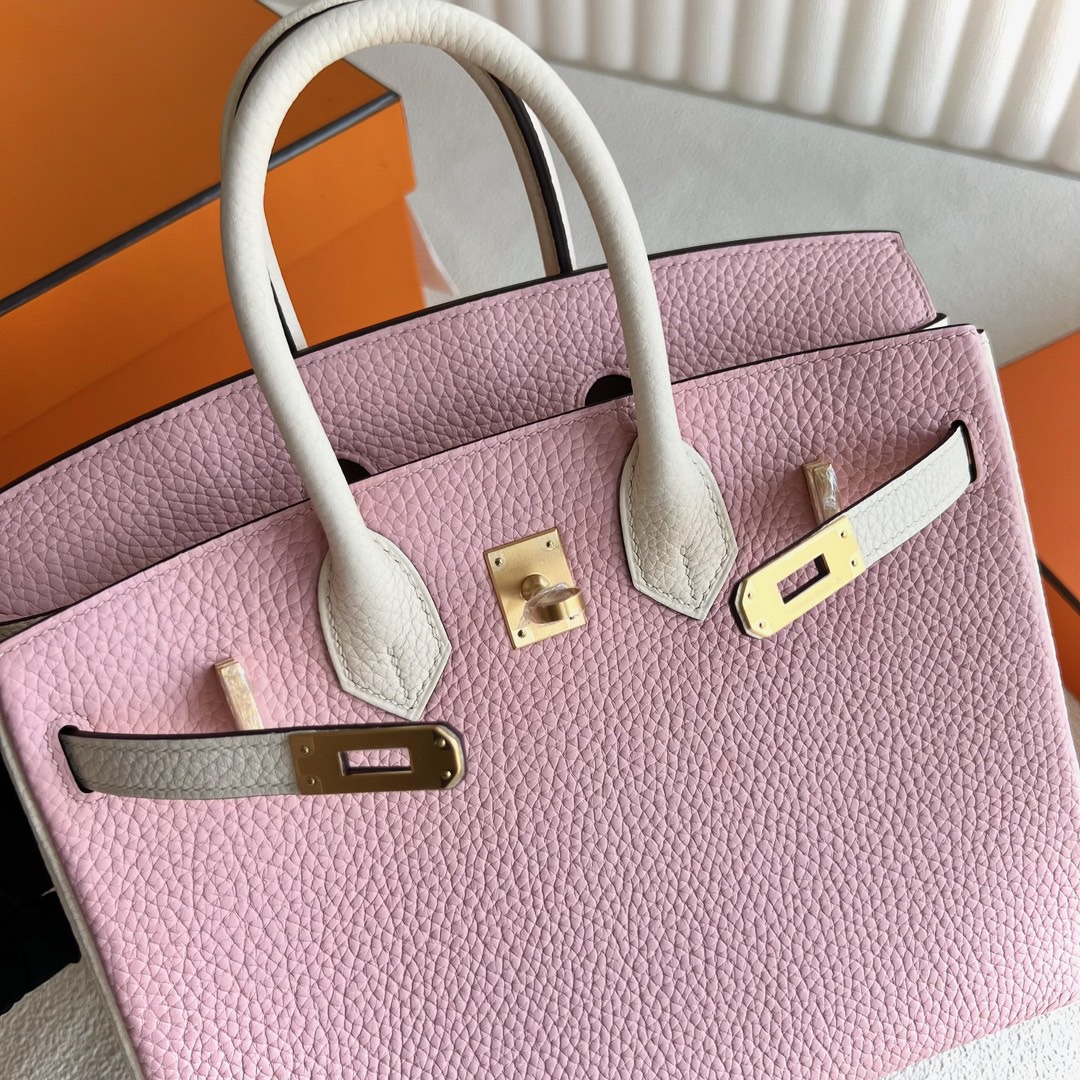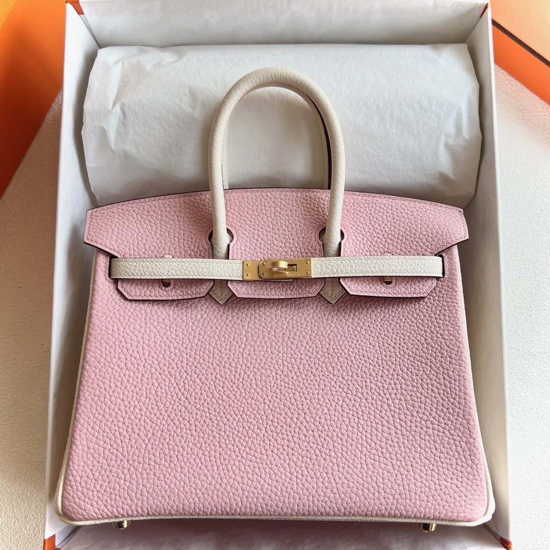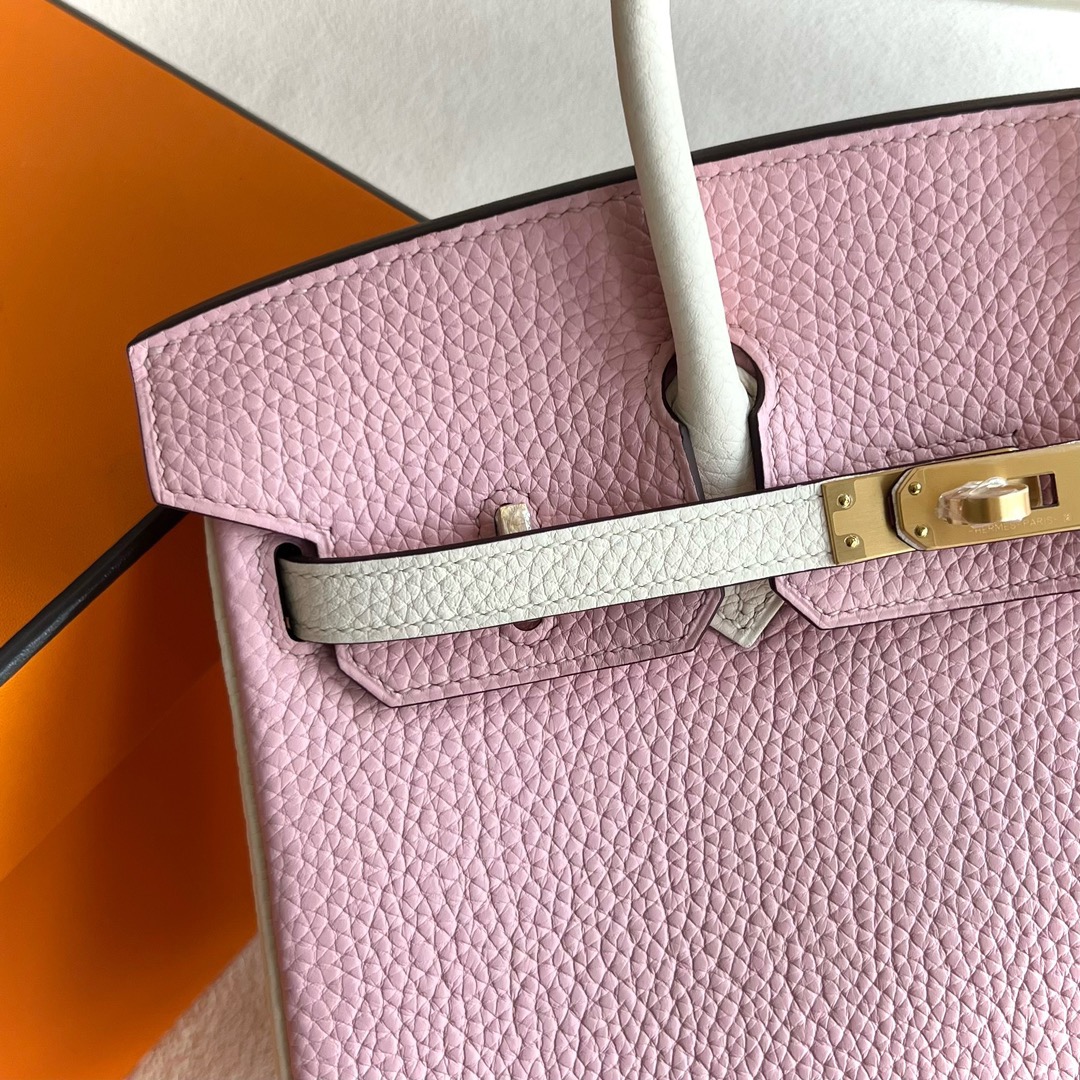 Hermes Birkin 25cm HSS Taurillon Clemence 3Q Rose Saiura 樱花粉 And I2 Nata 奶油白 磨砂金扣 Brushed Gold hardware 拉丝金色五金(BGHW)