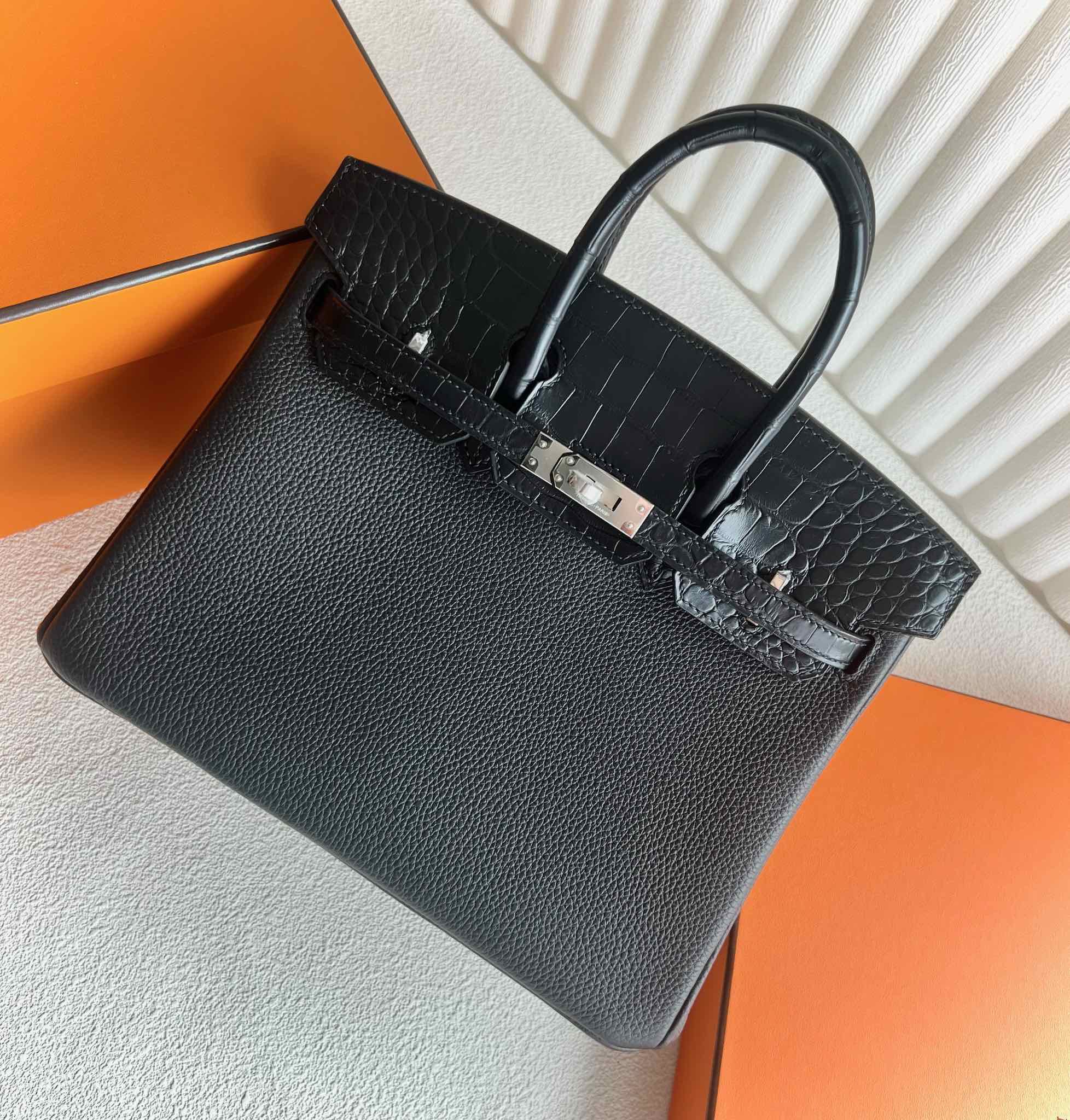 Hermes Birkin 25 Touch Togo/Matte Mississippiensis Alligator Noir Palladium Hardware