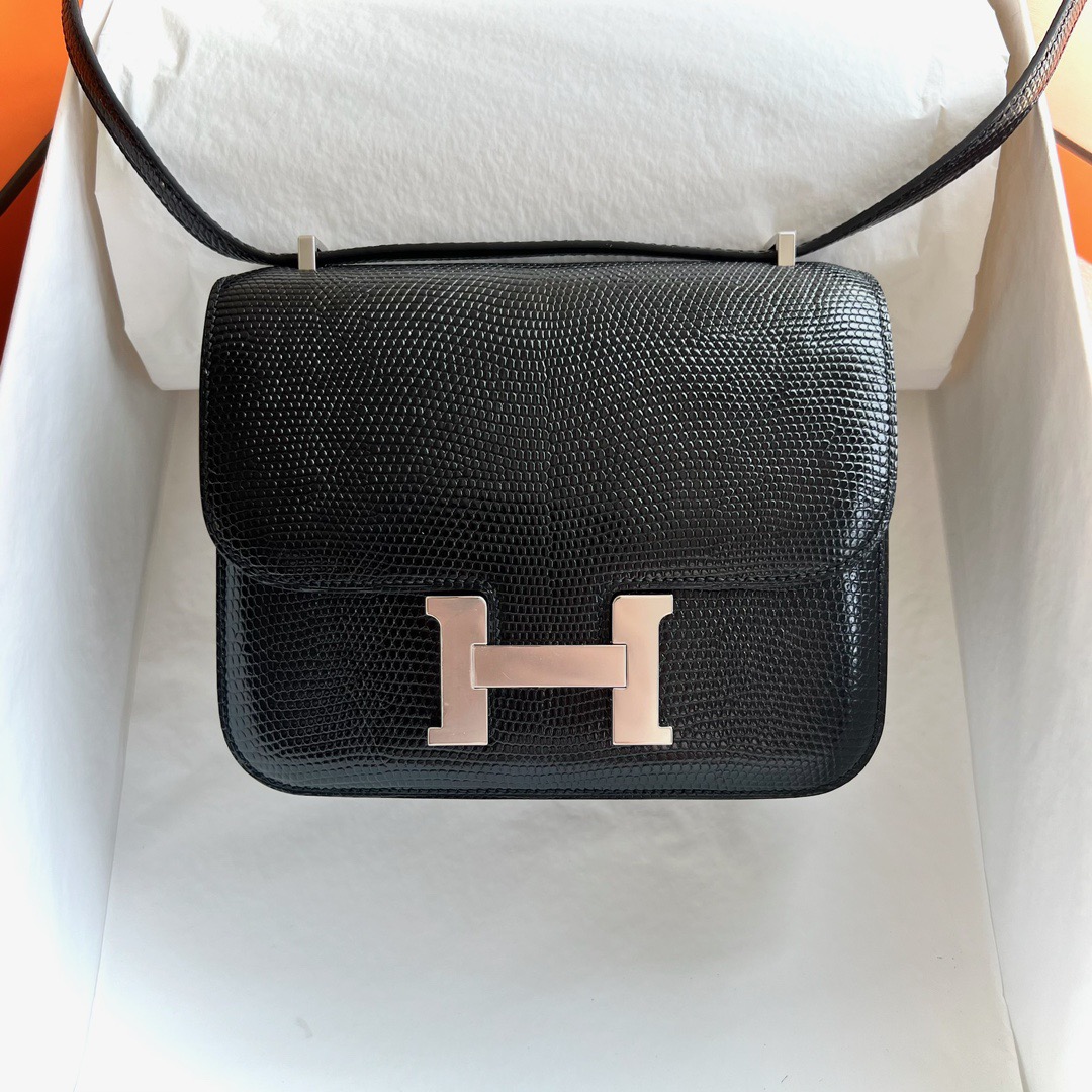 Hermes Constance 18cm Lizard Leather CK89 Noir 黑色 Palladium Hardware