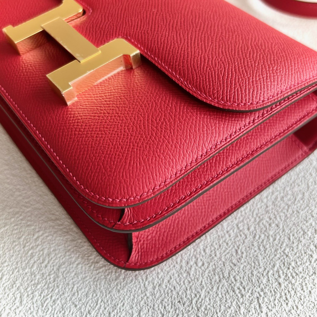 Hermes Constance 18cm Mirror style Epsom Q5 Rose casaque 国旗红 Gold Hardware