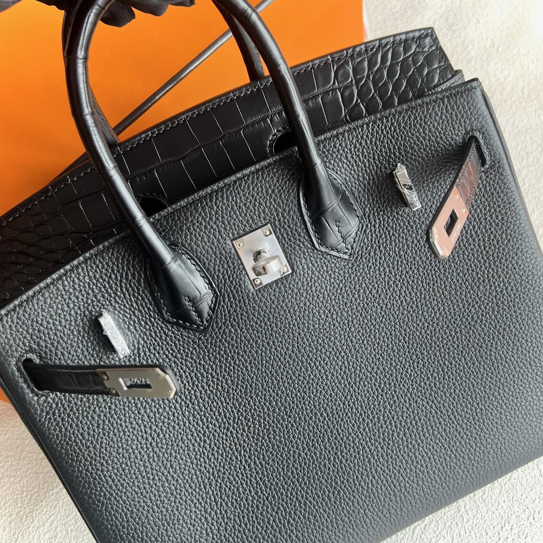 Hermes Birkin 25cm Touch Togo Original leather from Germany /Matte Mississippiensis Alligator CK89 Noir 黑色 Palladium Hardware