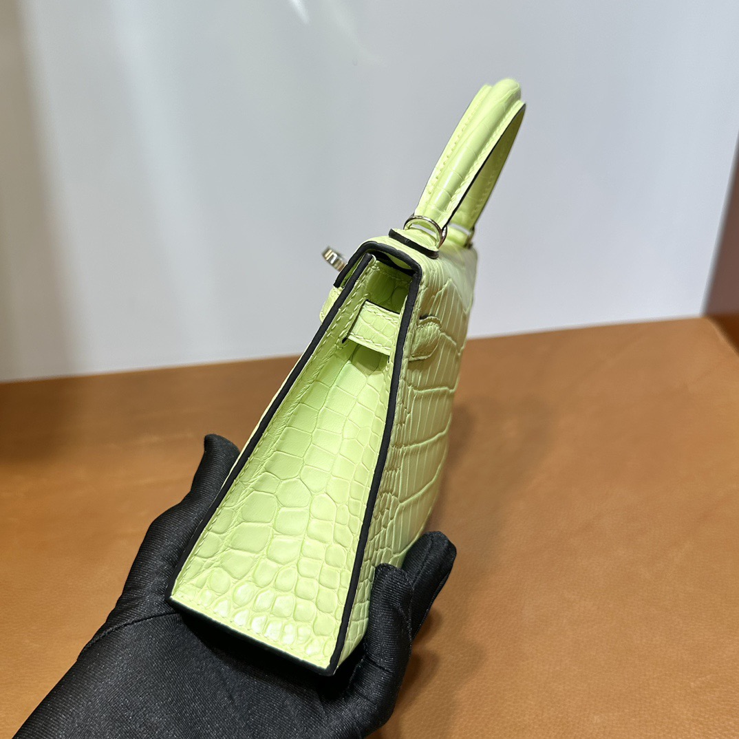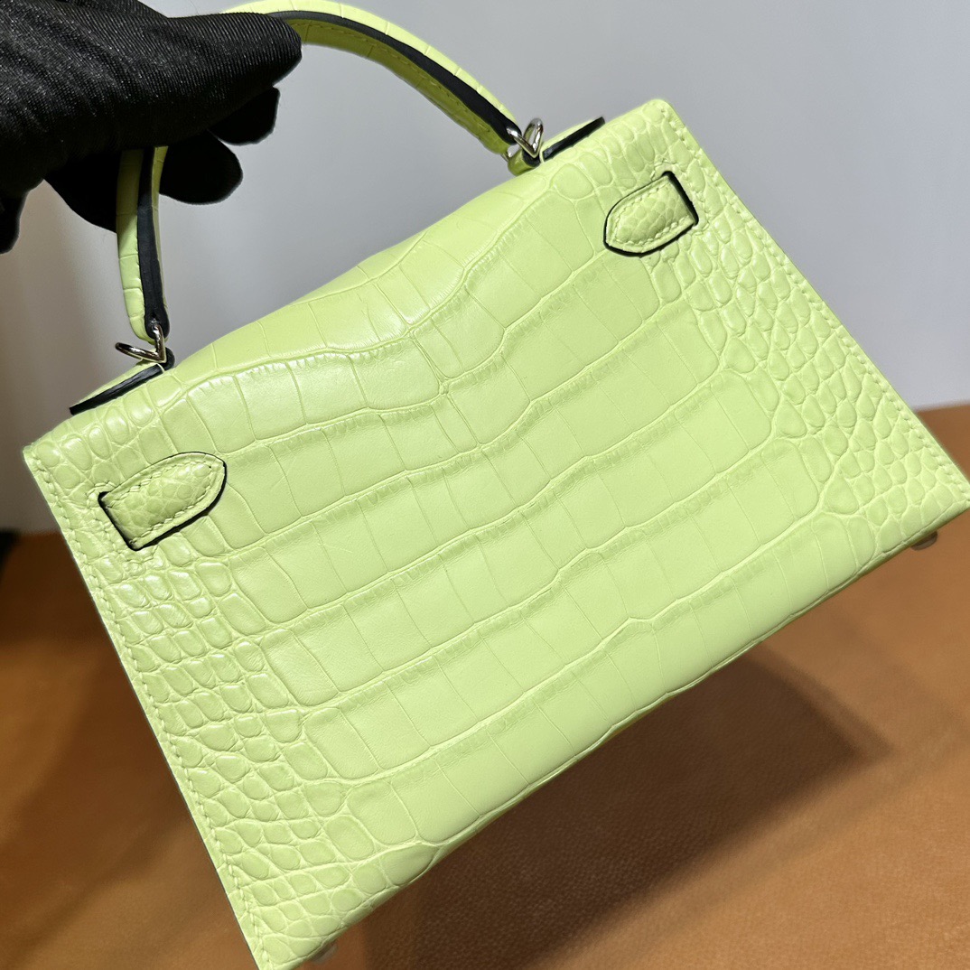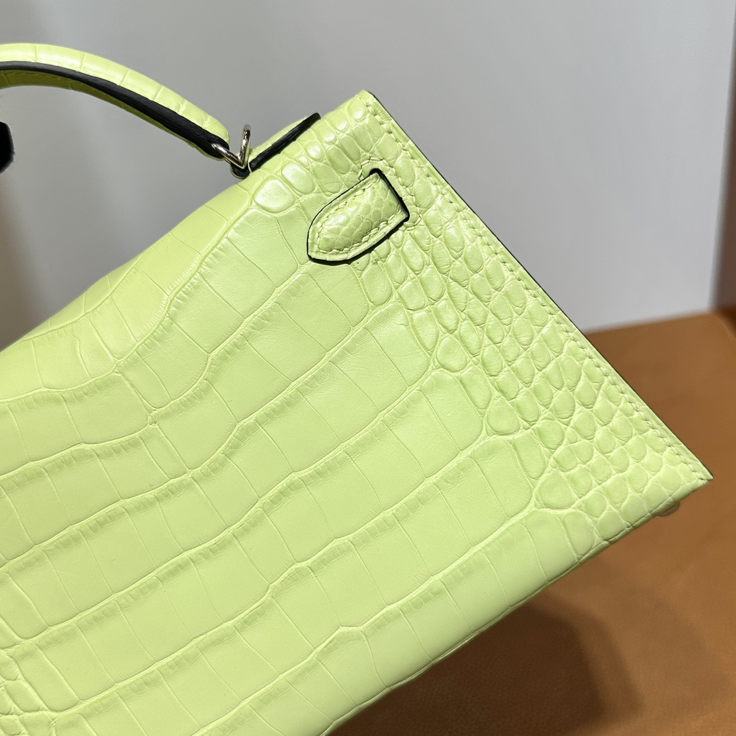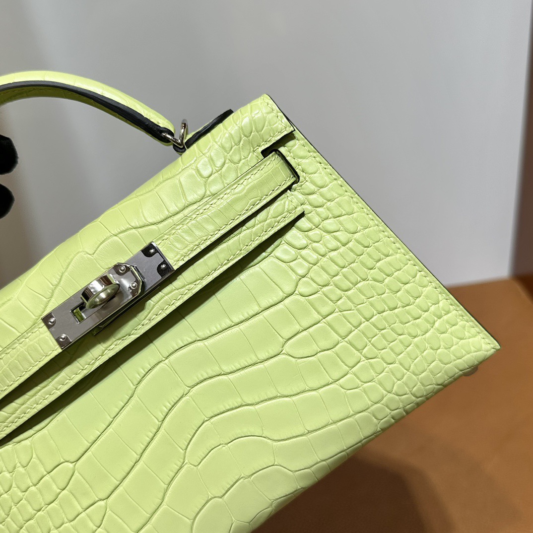 Kuwait Hermes Kelly Mini Bag Price Matt Mississippiensis Alligator Crocodile CK9R Lime 柠檬黄 Palladium Hardware(PHW)
